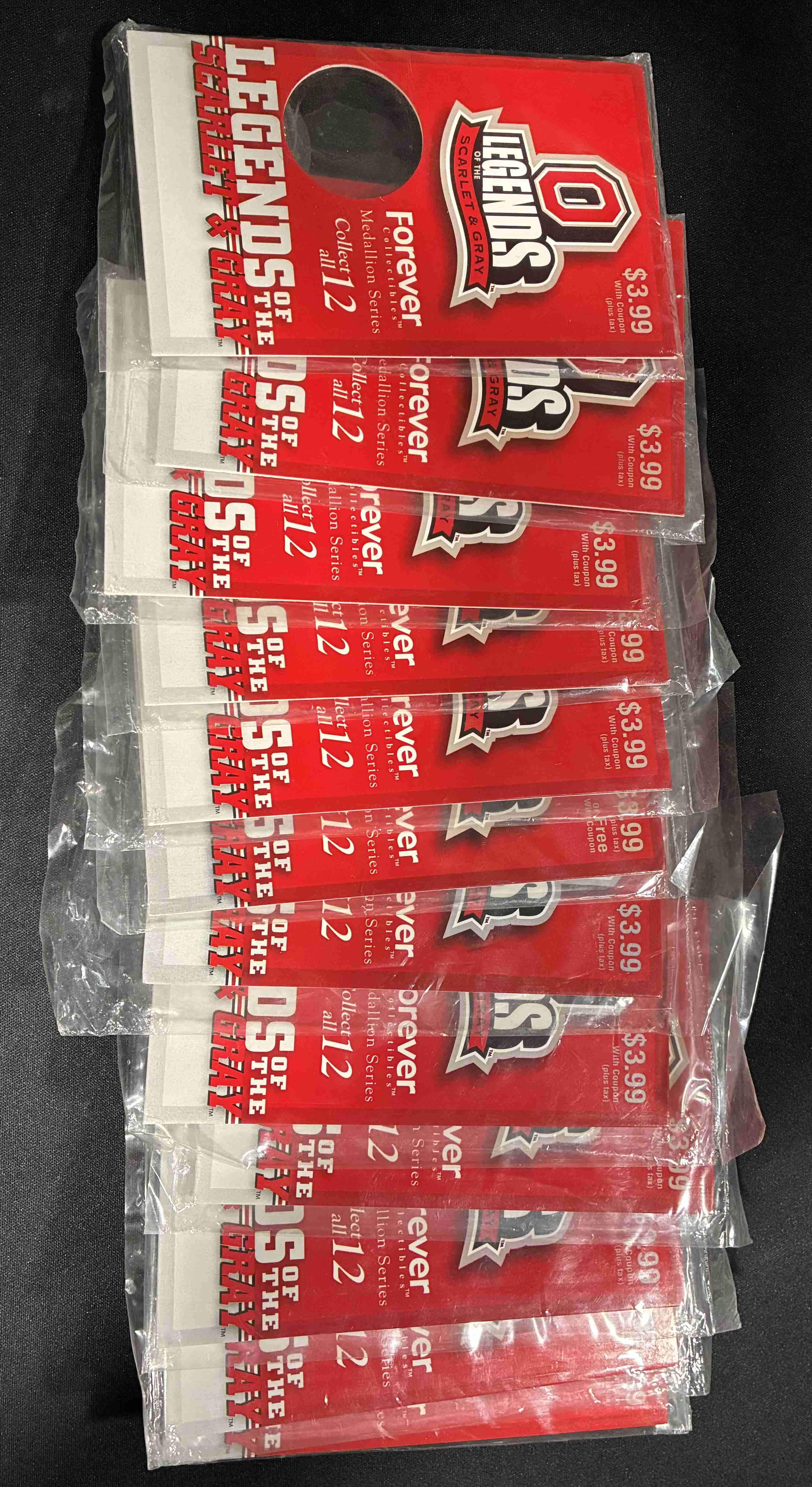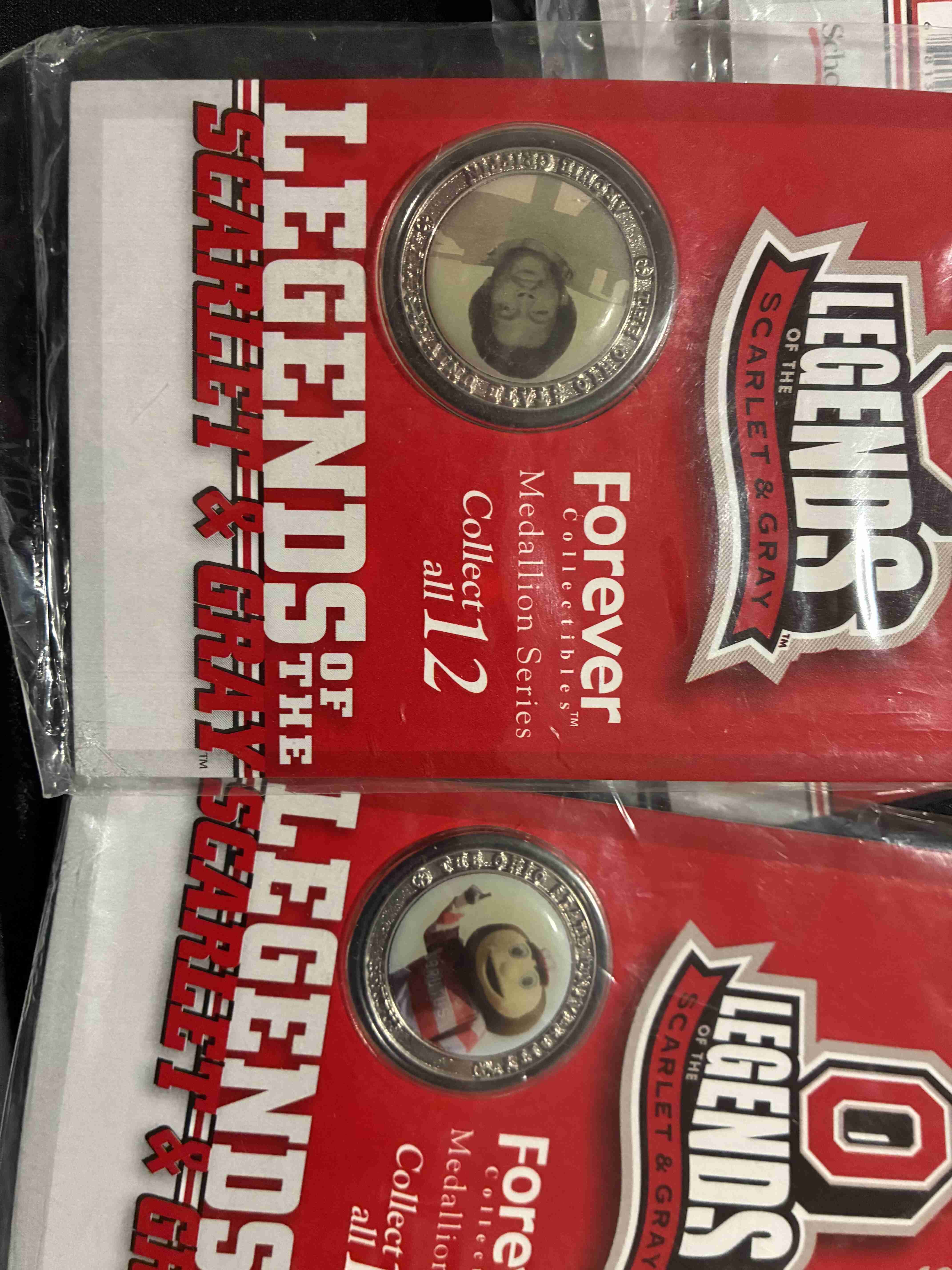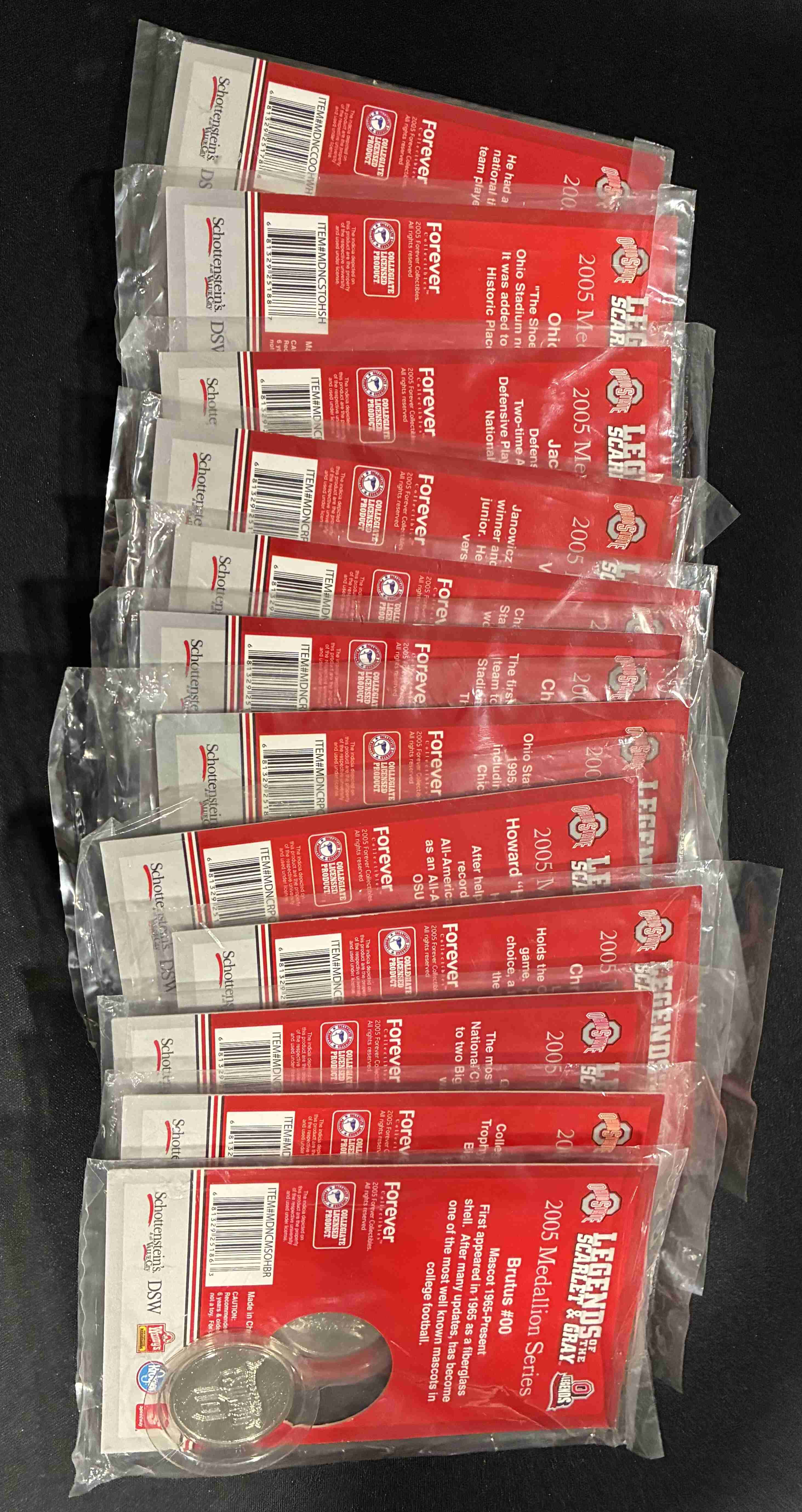 You are bidding on a 2005 Ohio State Medallion Series Complete Set of 12. These are commemorative medallions with buckeye legends on them. The set consists of Archie Griffin, Brutus, Rex Kern, Chris Spielman, Howard "Hopalong" Cassady, Eddie George, Charles "Chic" Harley, Les Horvath, Vic Janowicz, Jack Tatum, Ohio Stadium, & Woody Hayes. Tough to find a complete set of these coins. Please ask any questions before bidding. Thank you!