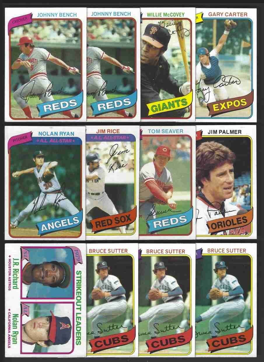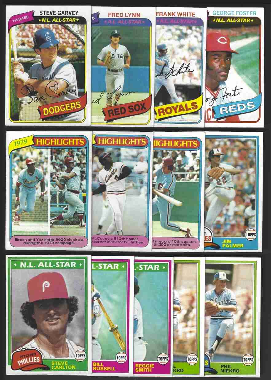 1980-81 Topps Baseball Lot (330) -High Grade-. 1980 (137 cards) 1981 (193 cards). There is some duplication. Lot contains Hall of Famers, stars, semi-stars, rookies, All-stars, Unmarked team checklists. This is a high-grade lot. Cards have minor flaws - nice corners. Please review scans carefully for condition.