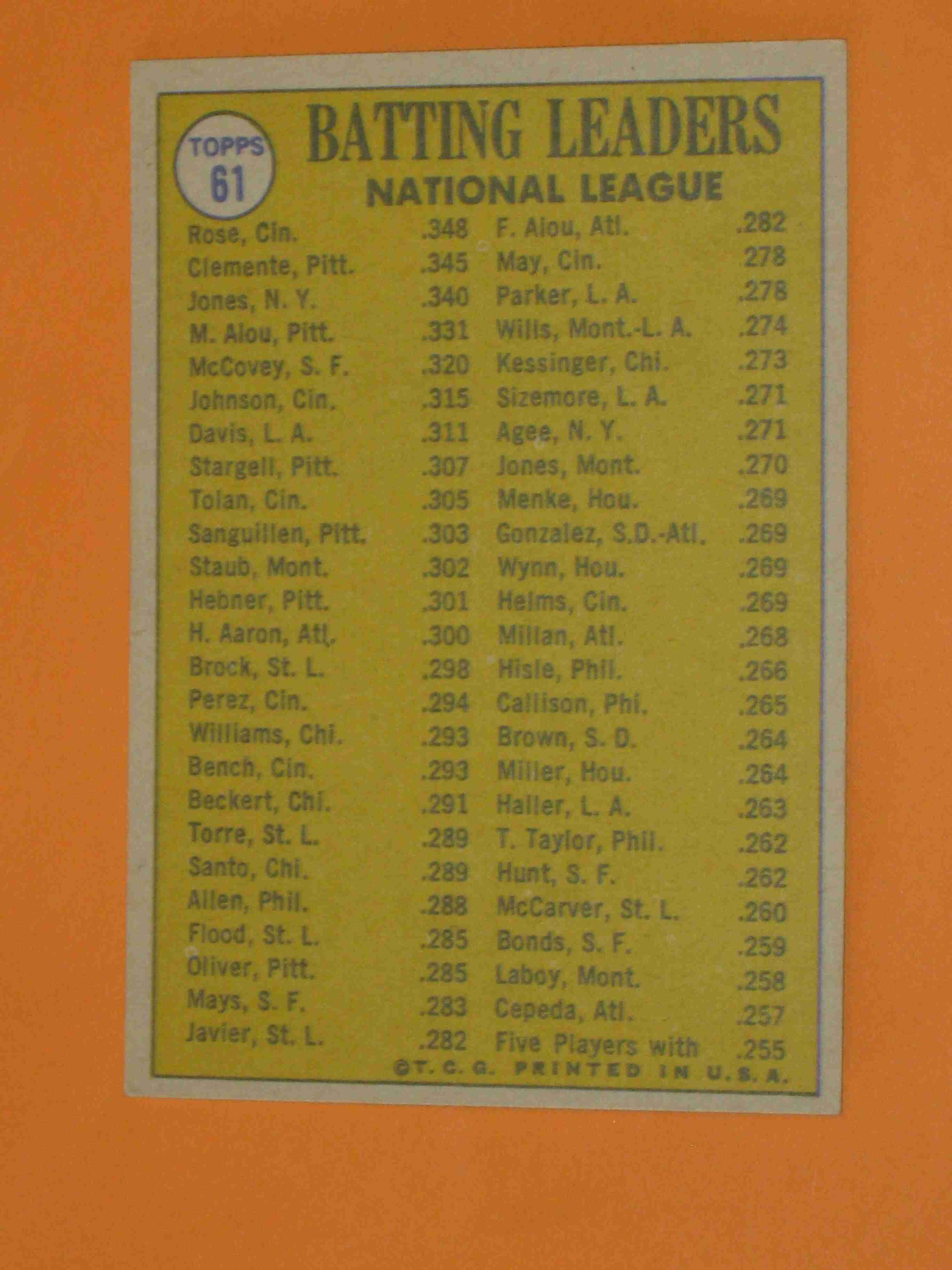 1970 Topps NL Batting Ldrs #61 Rose Clemente Jones NICE