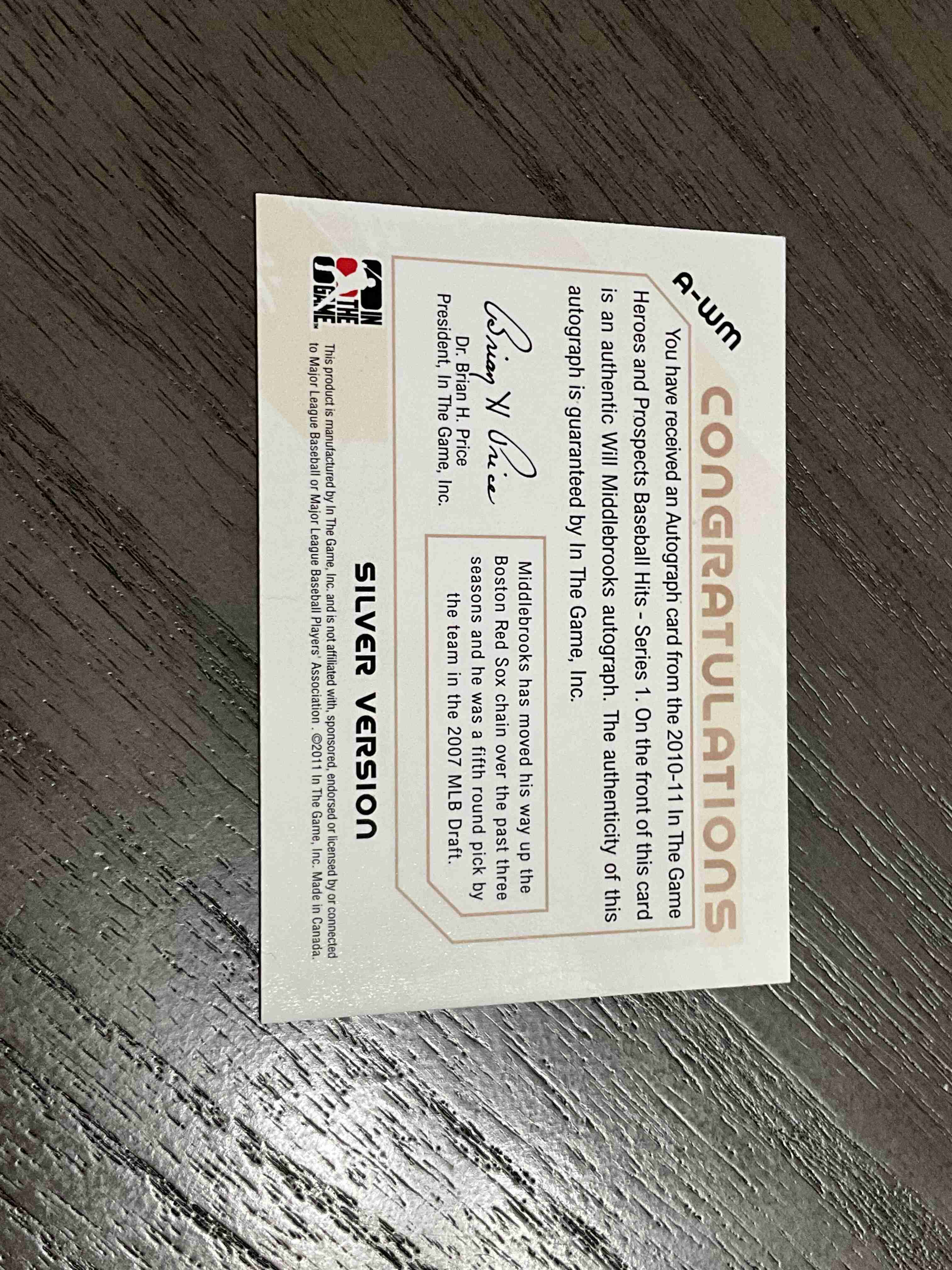 Will Middlebrooks Autograph 2011 In The Game A-WM