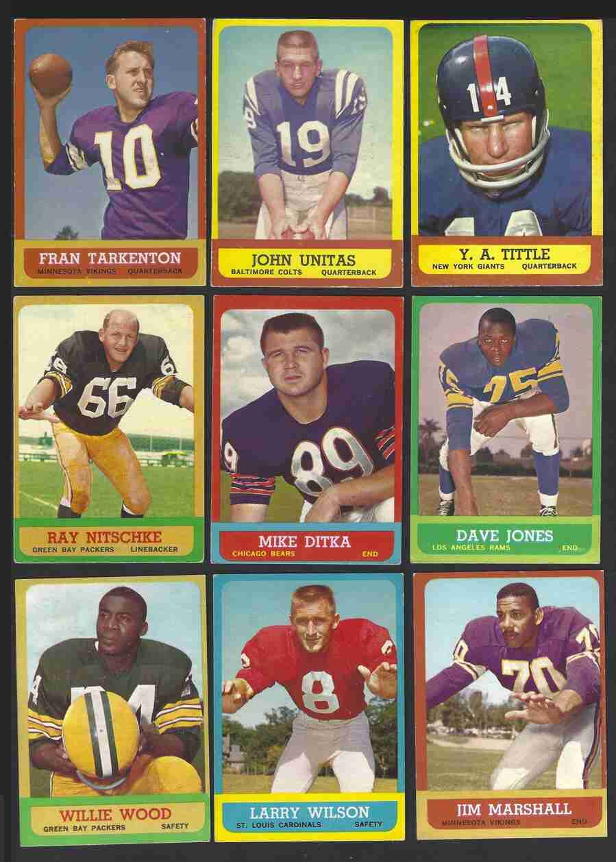 82,86. Excellent near complete set of 1963 Topps Football cards. Extremely rare near set of football cards from this era. Cards are mostly in the higher-grade range, a few mid-grade. Nice shape for this condition-sensitive set! Please review scans carefully for condition.