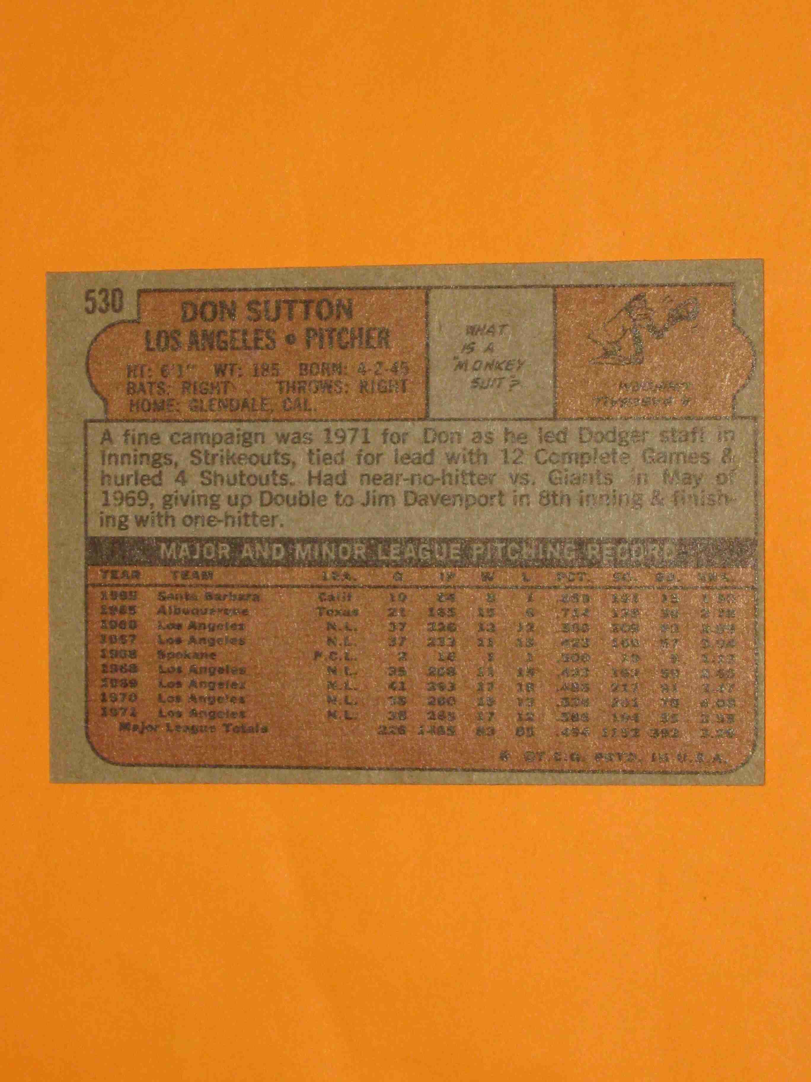 1972 Topps Don Sutton #530 Los Angeles Dodgers NICE