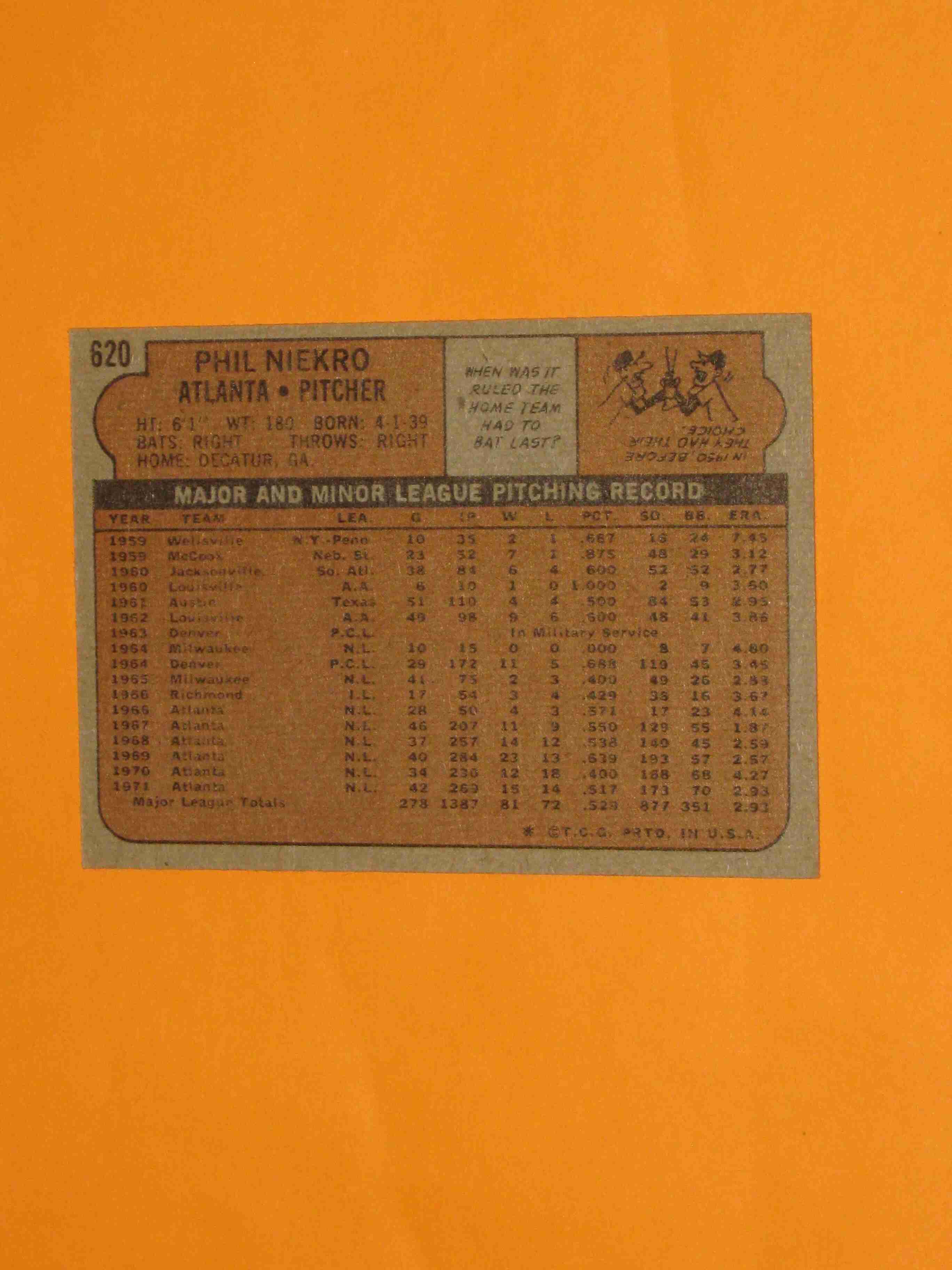 1972 Topps Phil Niekro #620 Atlanta Braves NICE