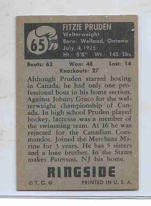 1951 Ringside #65 ~ Fitzie Pruden Welterweight
