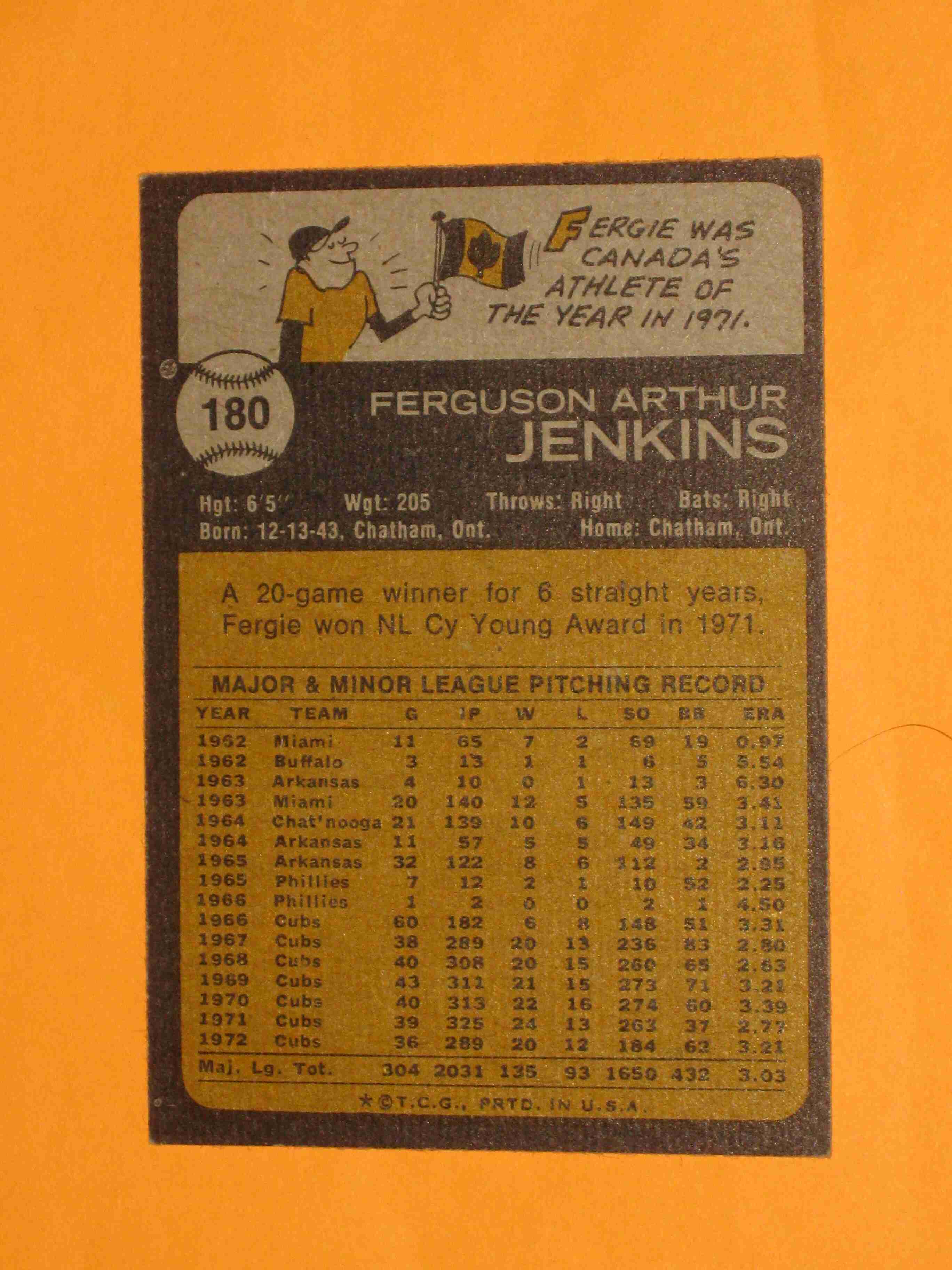 1973 Topps Fergie Jenkins #180 Chicago Cubs NICE