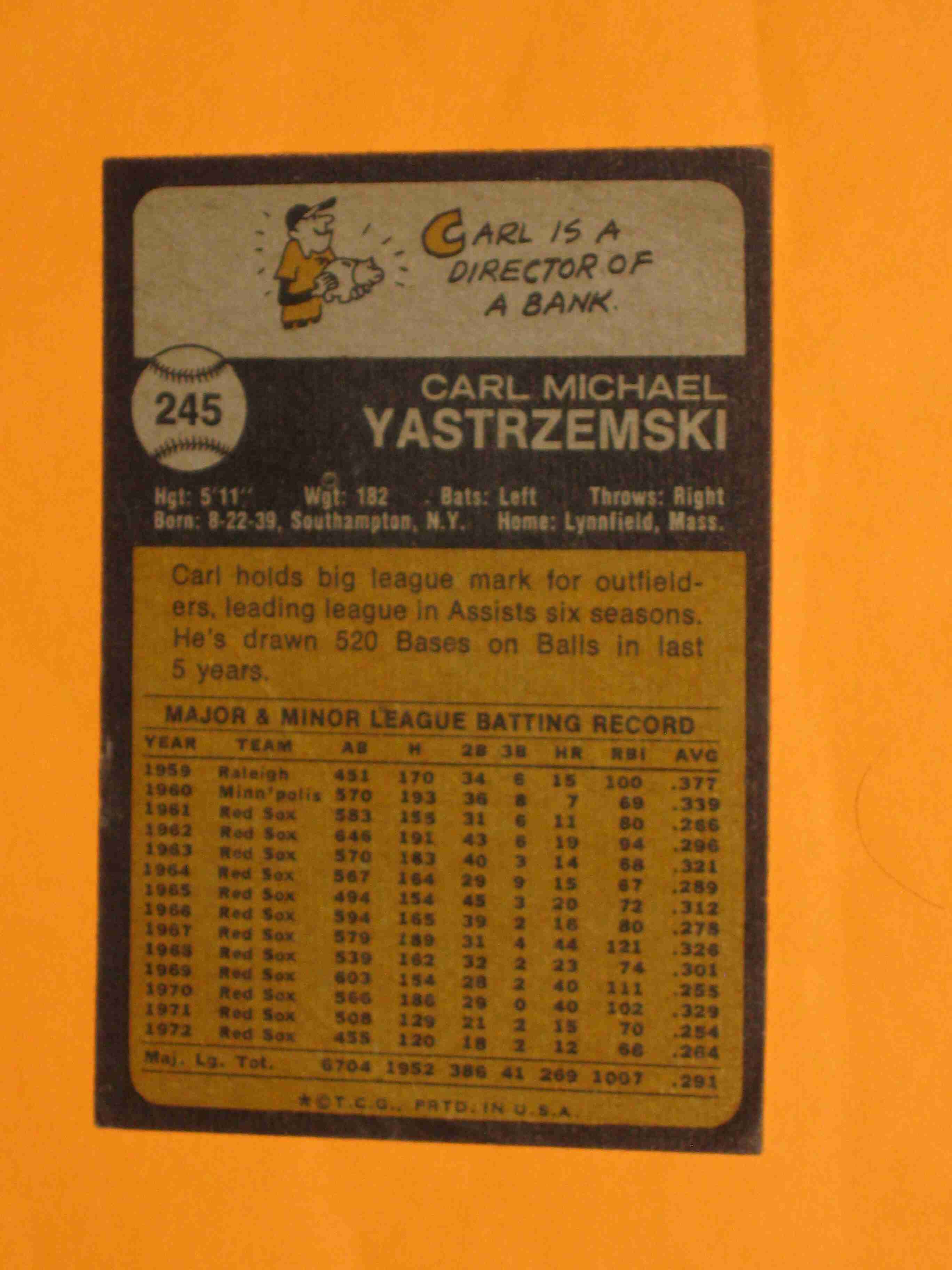 1973 Topps Carl Yastrzemski #245 Boston Red Sox