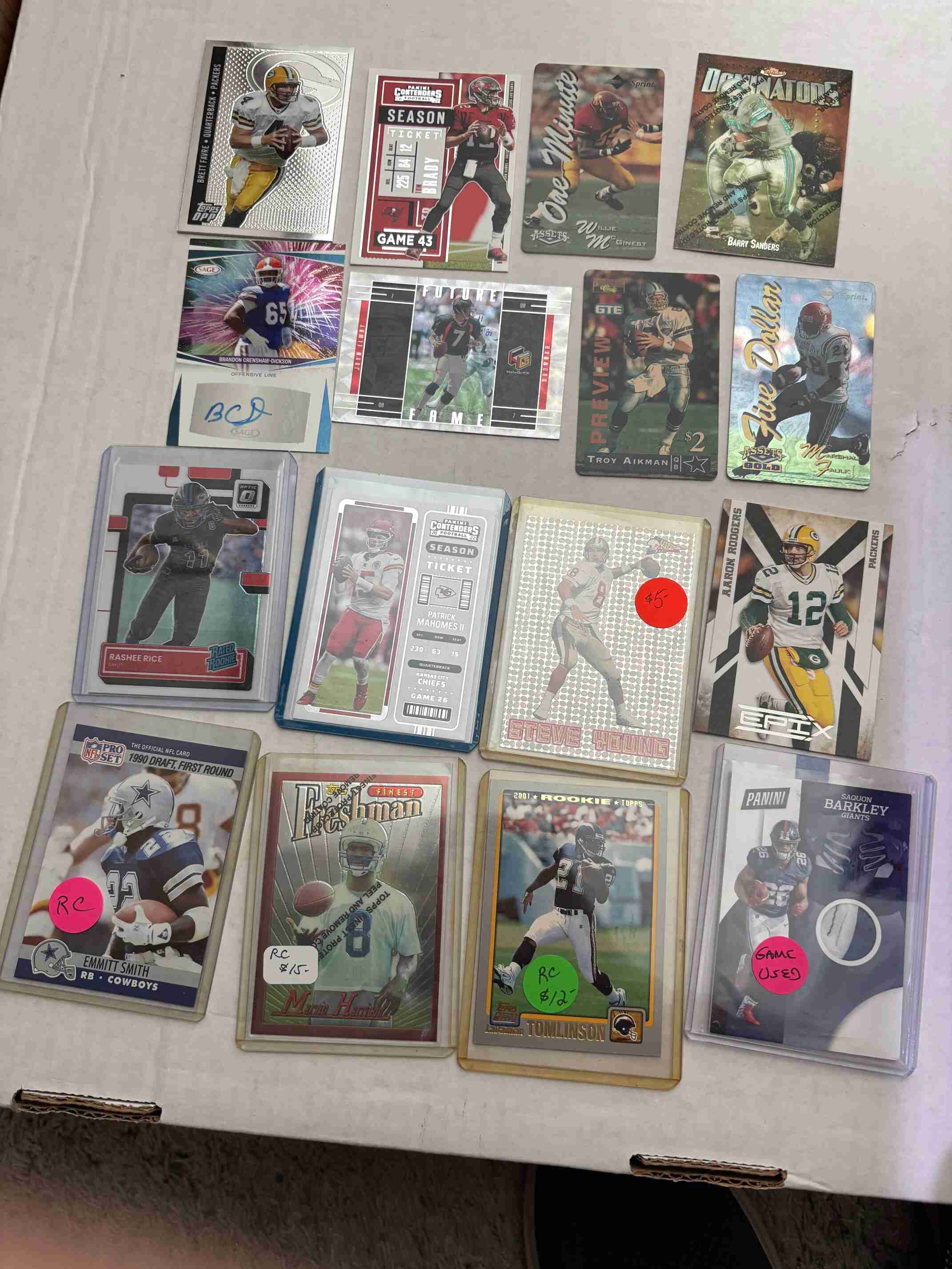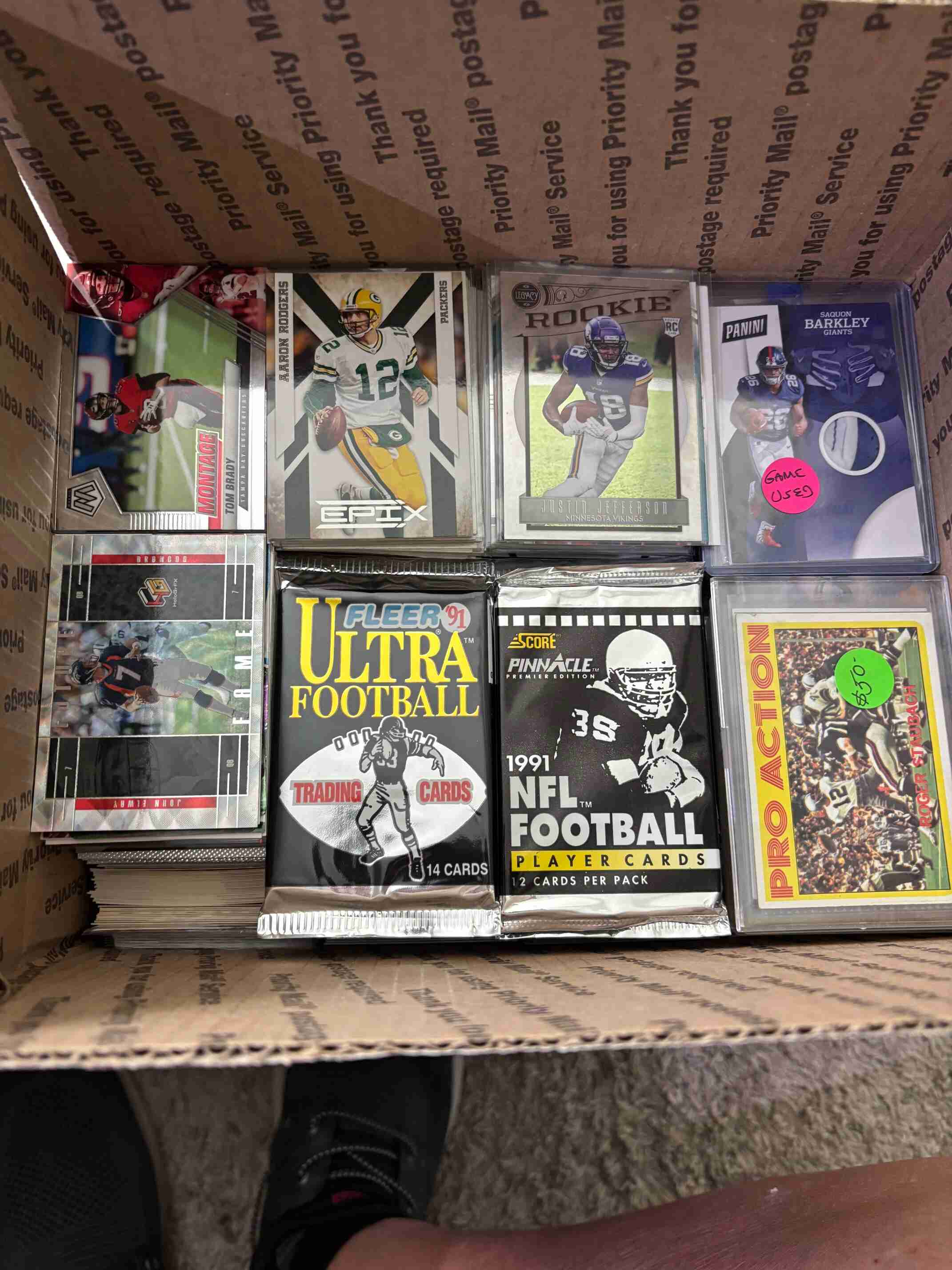 Huge clearance collection of 2500 Football cards loaded with vintage, Rookies, Stars, Uncut team sheets, a perfect Saquon Barkley game used card, and unopened packs, all in great condition. You will receive everything shown in the photos and more. I am having a complete clearance of my 2,000,000 card collection, so please check out my other auctions for more great deals.