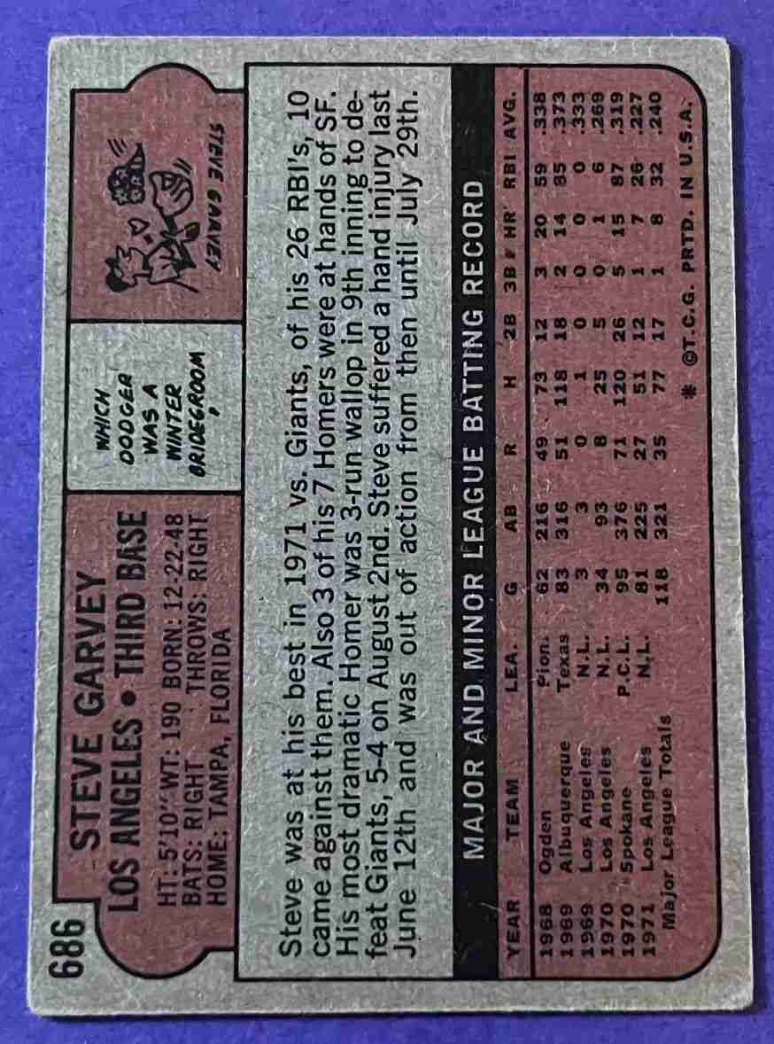 72 Topps STEVE GARVEY Hi #686 +++