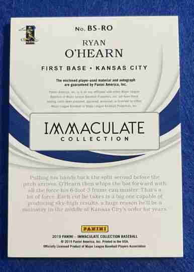 2019 Panini Immaculate Collection Batting Stance, RYAN O'HEARN RC Jersey Auto #BS-RO, #d/25.