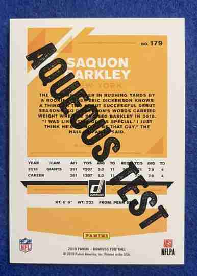 2019 Donruss SAQUON BARKLEY #179, Aqueous Test
