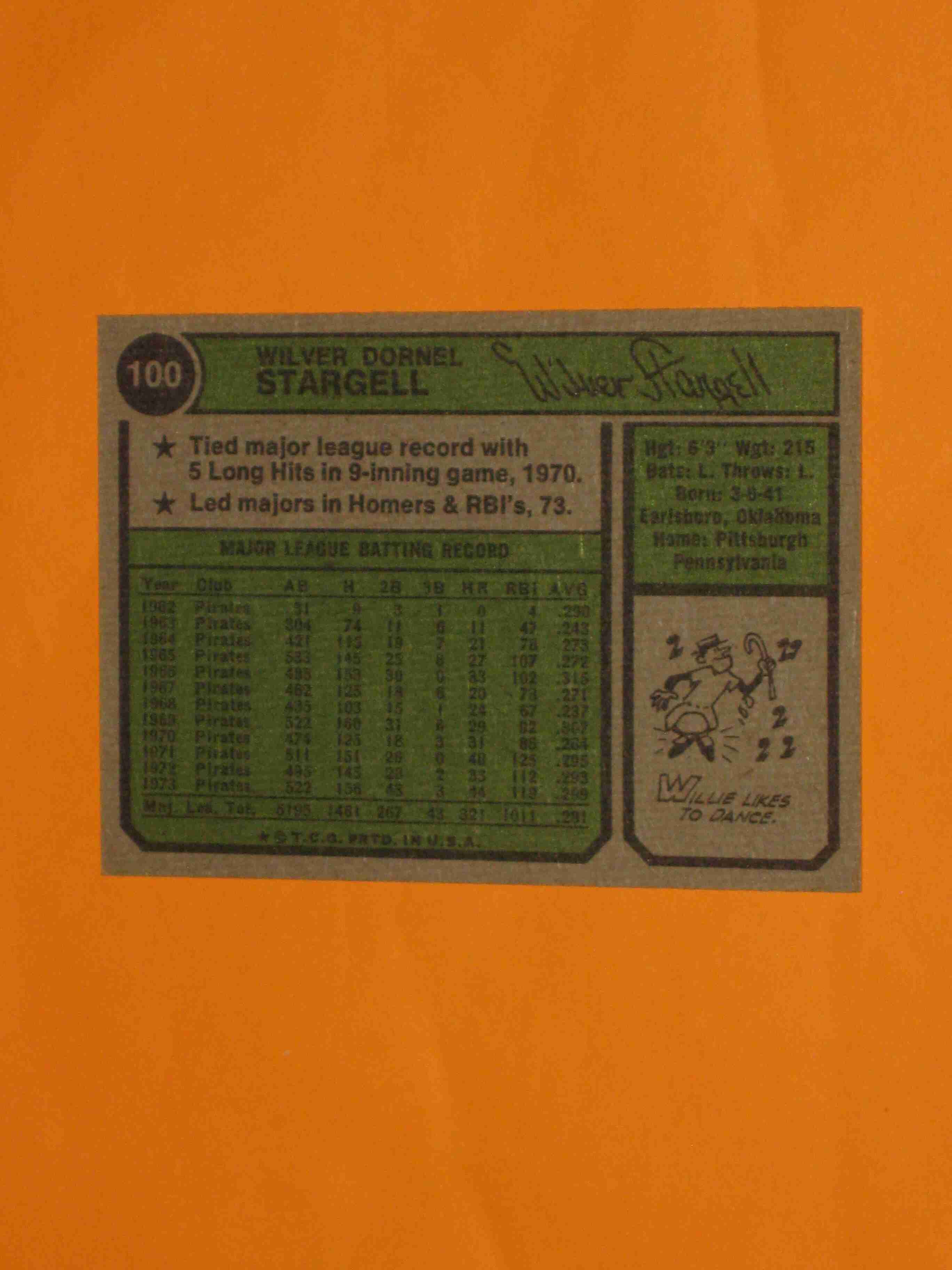 1974 Topps Willie Stargell #100 Pittsburgh Pirates NICE