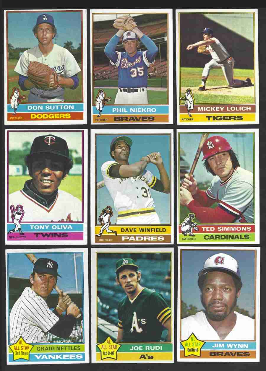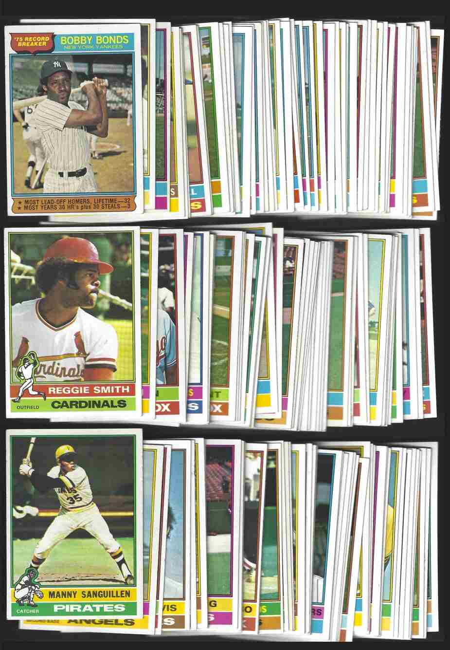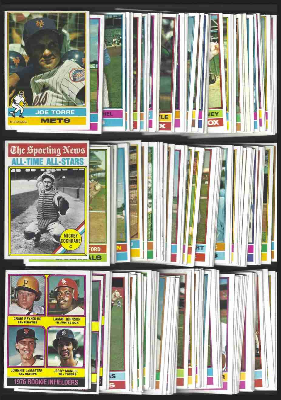 1976 Topps Baseball Lot (330) -High Grade-. Excellent large lot of 1976 Baseball cards. All different - half of the complete set! Lot includes Hall of Famers, All-Star's, All-Star Rookies, Unmarked Team Cards, Semi-Stars & Rookies. This is a high-grade lot. Cards have nice corners. Nice lot! Please review scans carefully for condition.