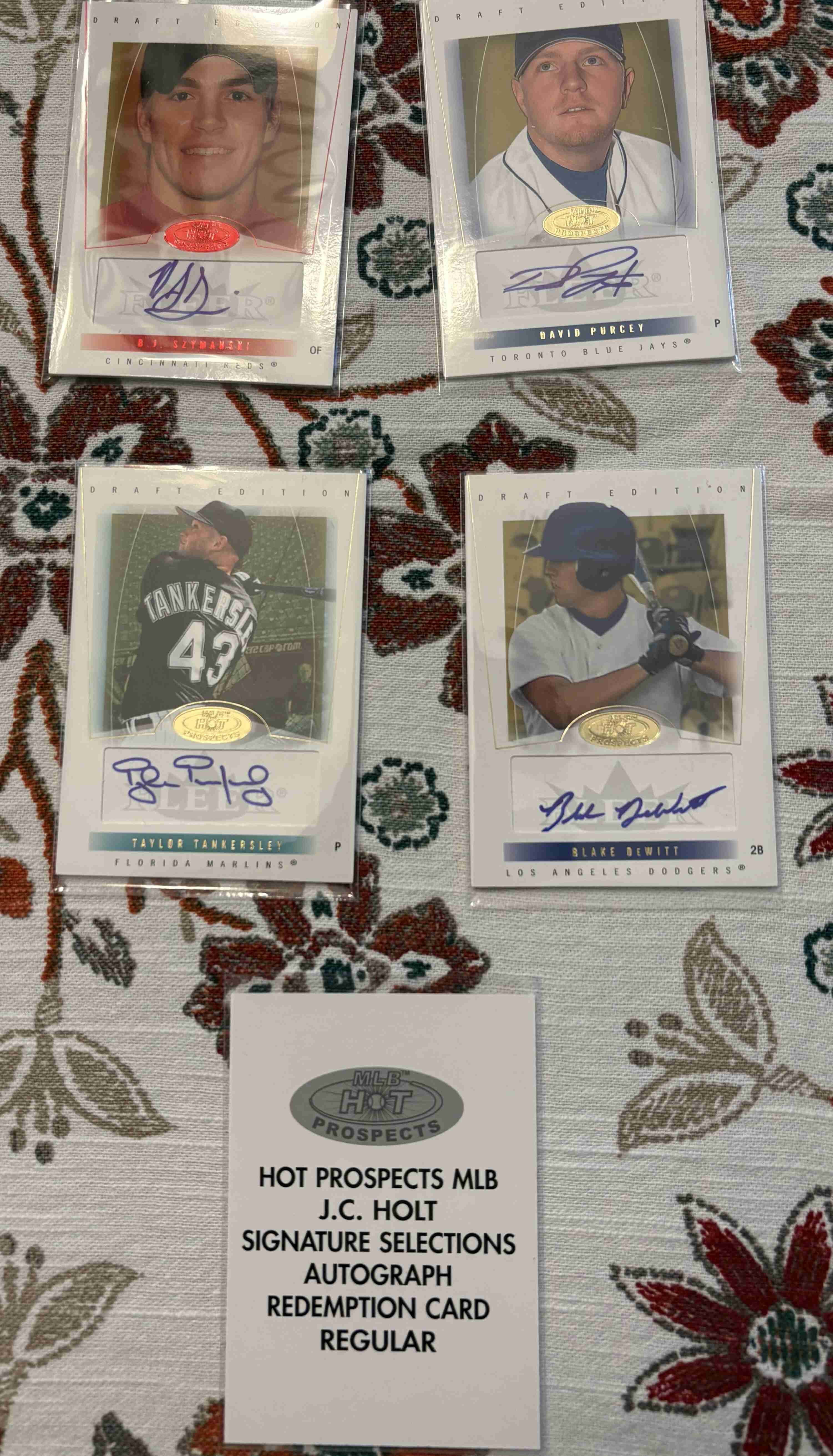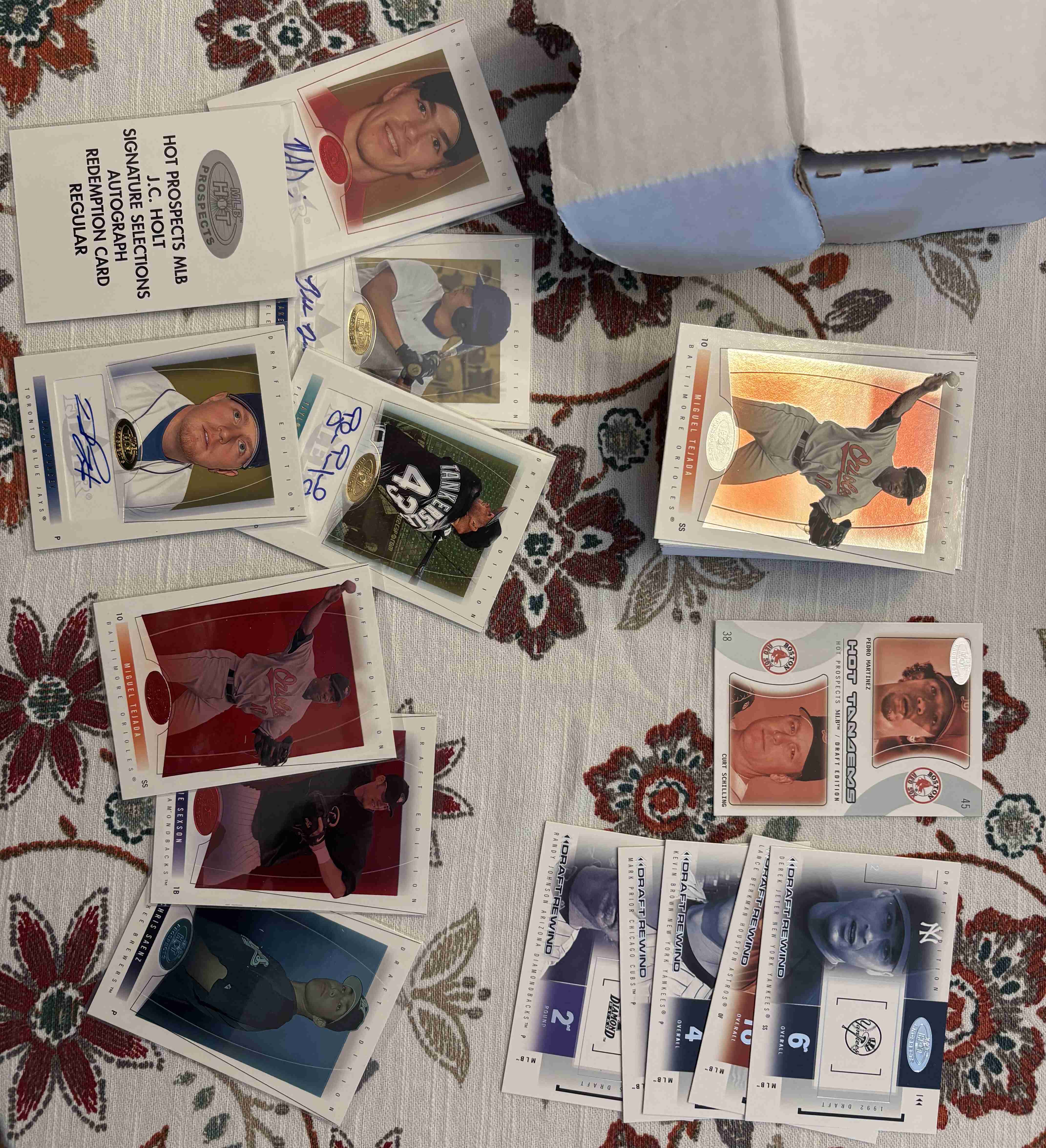 Complete base set of cards 1-60 of the 2004 Fleer Hot Prospects release. Also including several inserts, 2 numbered parallels, 1 numbered rookies, 1 auto redemptions, and 4 autos (the red is numbered to 25, the gold are numbered to 299. All cards are in a new BCW box and will ship with tracking. Thank you for looking and be sure to check out my other lots.