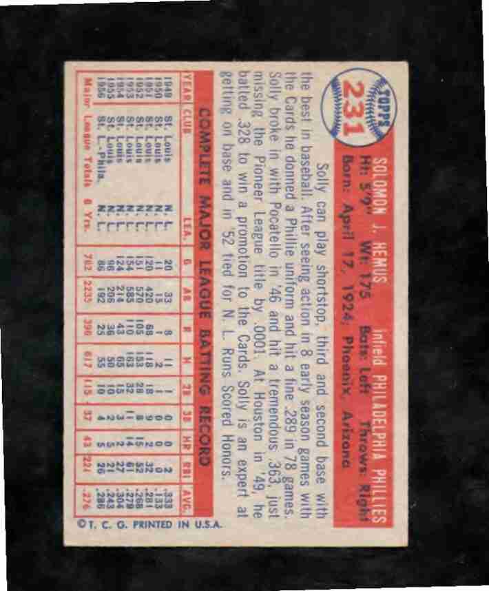 1957 Topps # 231 SOLLY HEMUS Phil. Phillies