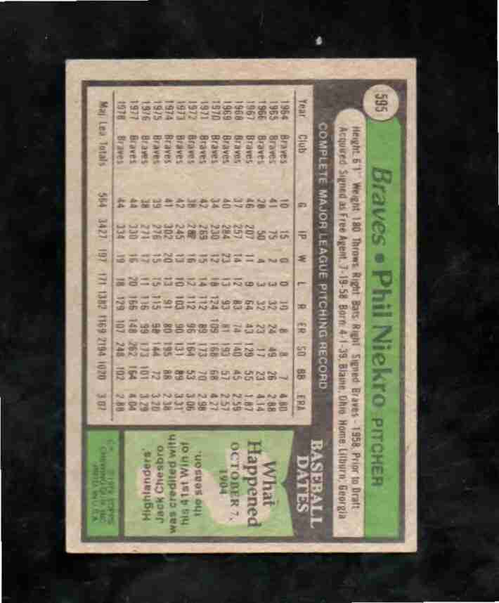 1979 Topps # 595 HOFer PHIL NIEKRO Atlanta Braves