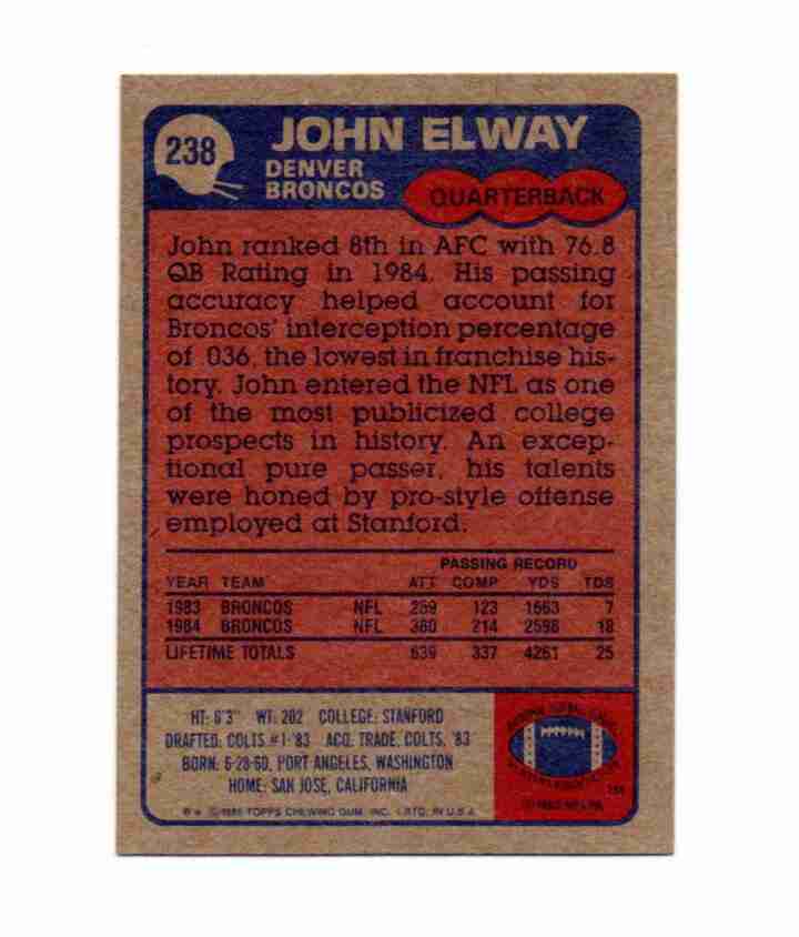 1985 Topps # 238 JOHN ELWAY 2nd year card NM/M