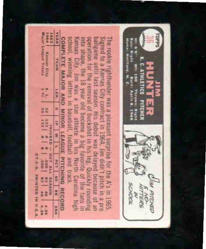 1966 Topps # 36 HOFer JIM "Catfish" HUNTER Athletics
