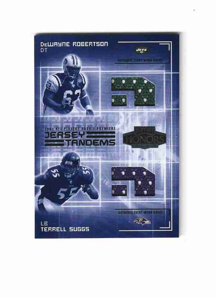2003 Honors TERRELL SUGGS DEWAYNE ROBERTSON Dual Jersey Tandems Rookie