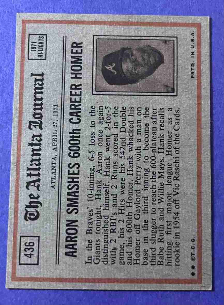 ++ HOF! No wrinkles, bends or creases. Mild corner wear. Back shows Hank Aaron and toning. This card will be shipped via USPS with tracking. SHIPPING TO USA IS A FLAT $5.25! *PLEASE NOTE that orders placed on Friday will ship Monday.* **I do not ship to Canada at this time.**