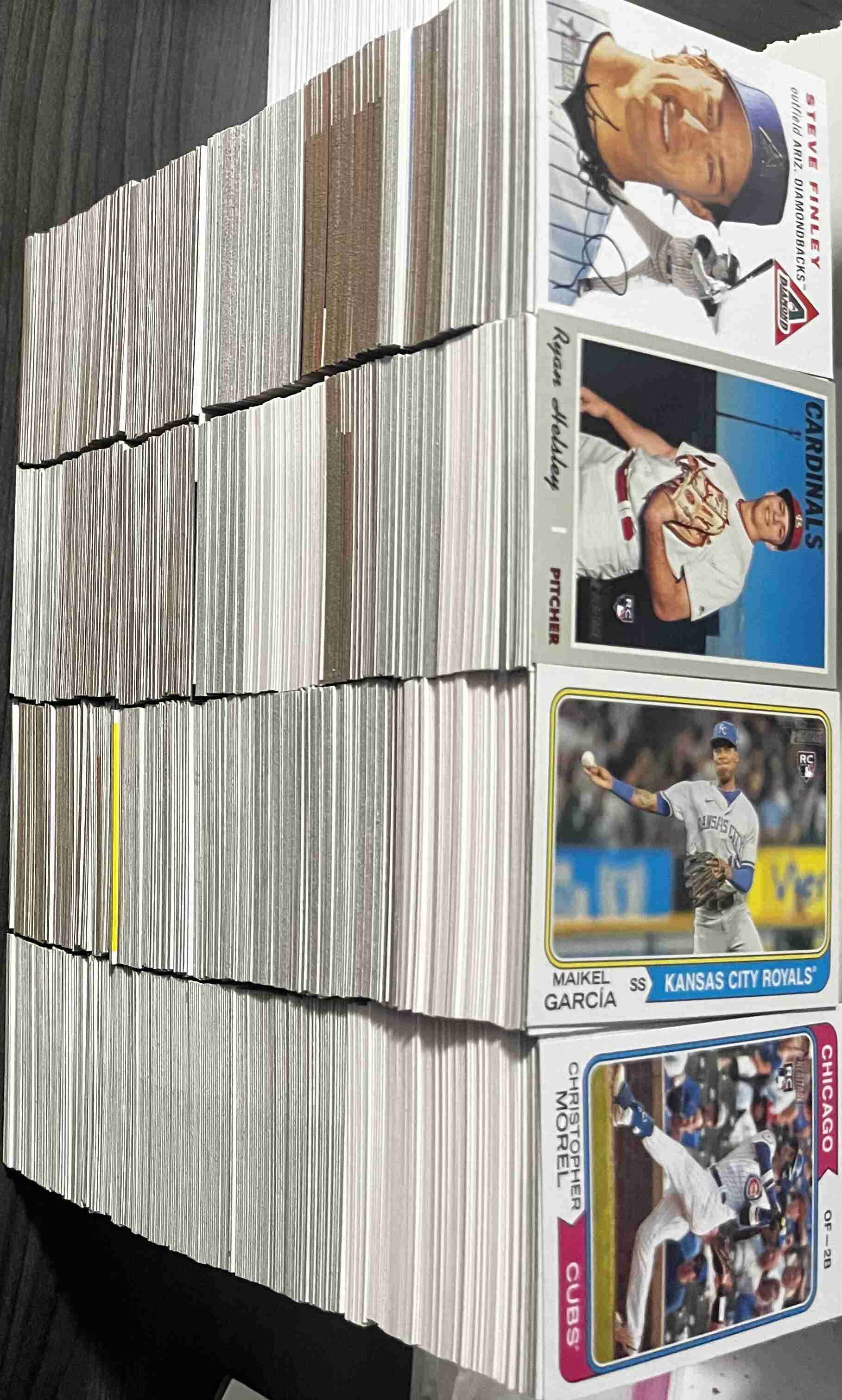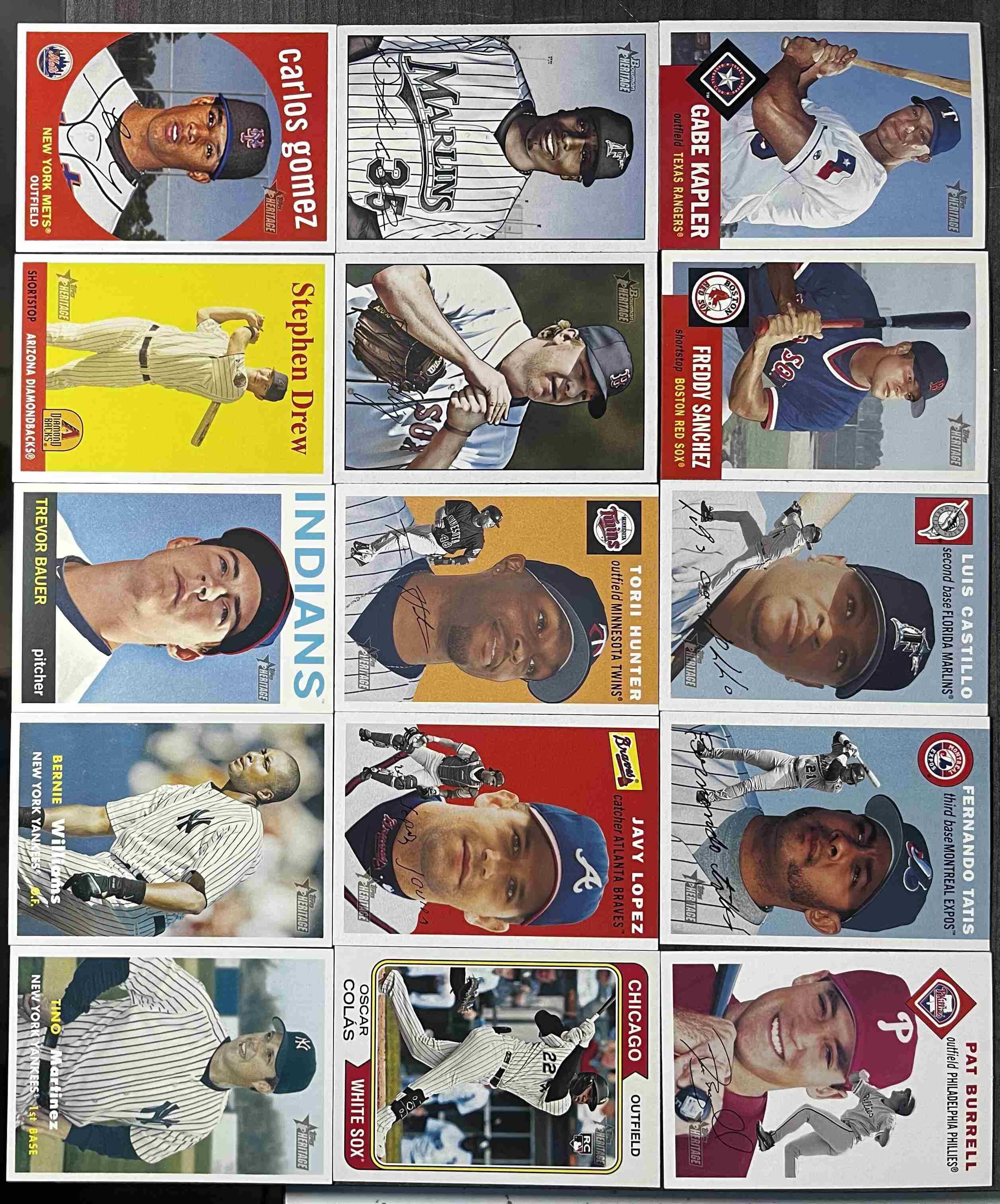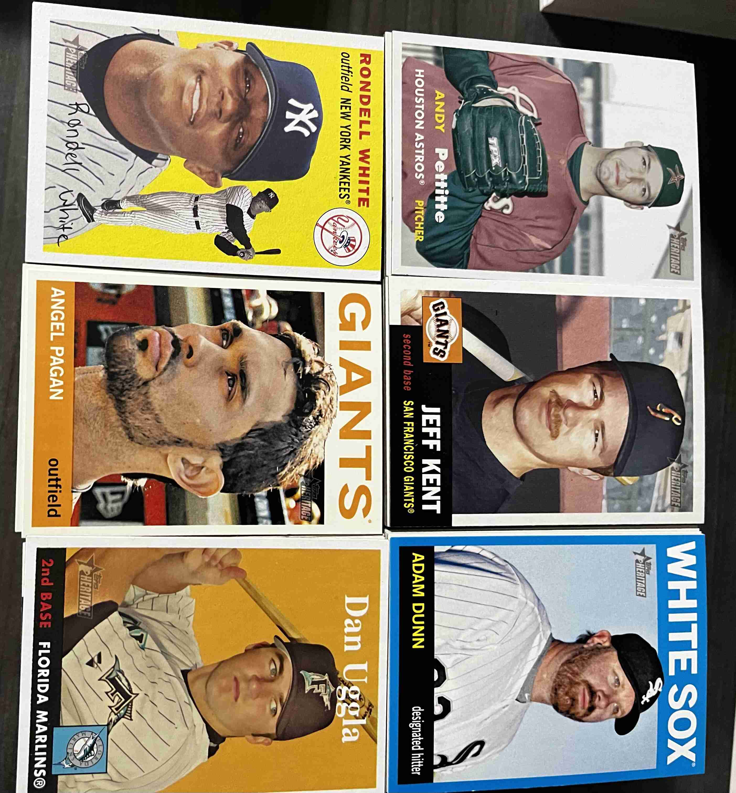 Huge Topps heritage lot of 1075 cards. I would estimate that 50% are from 2003 & 2006 and the rest 2002, 2015 & 2022. There are also some Bowman Heritage from 2007. I know some SP’s & Variations can bring good money and I honestly don’t know if there are any. I don’t have the time to look nor can my eyes see those tiny numbers. Cards are in really nice shape for heritage, NM-MT. Shipping will be usps ground/prioriry.