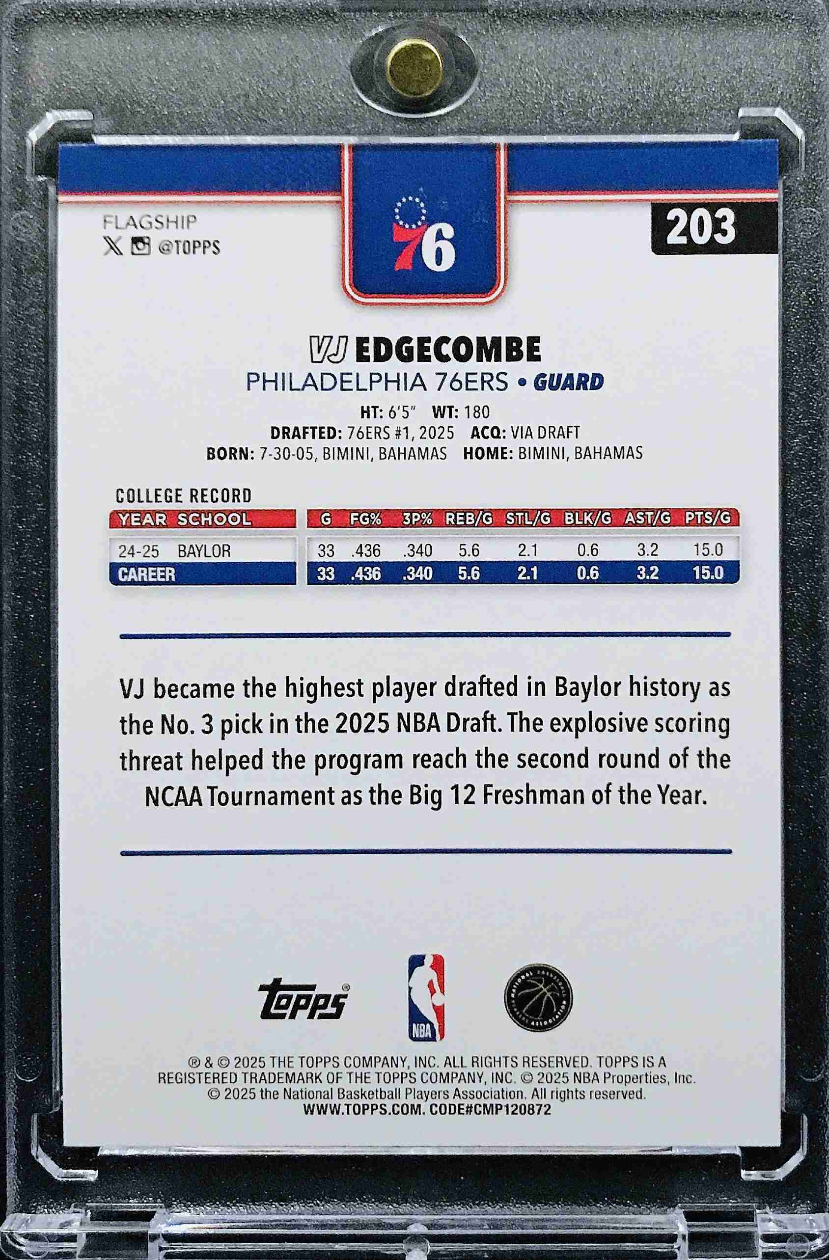 VJ EDGECOMBE RC - 2025-26 Topps #203 - PHILADELPHIA 76ERS