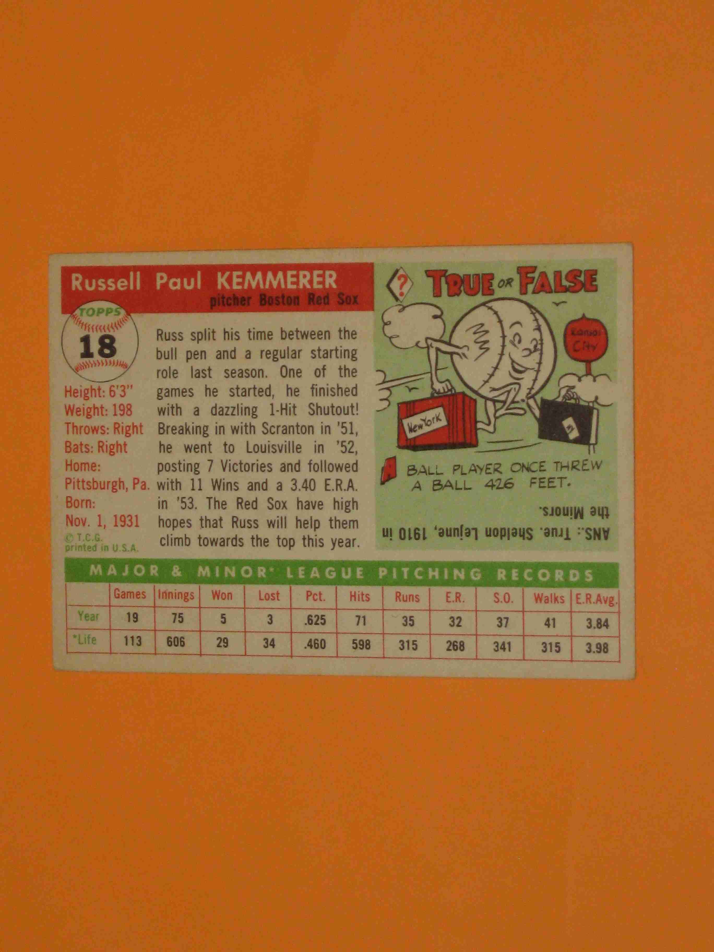 1955 Topps Russ Kemmerer #18 Boston Red Sox