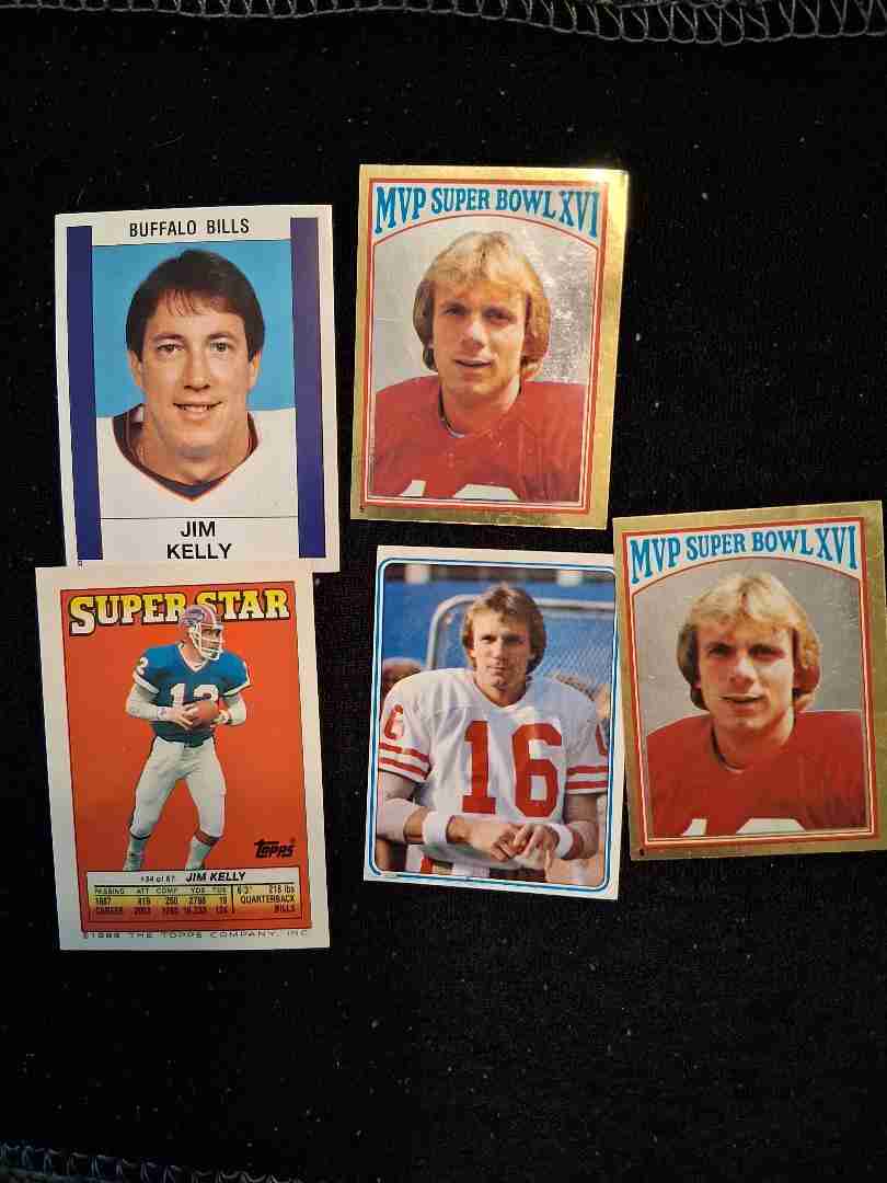 1982, '83, & 88 Joe Montana & Jim Kelly Topps/Panini Sticke