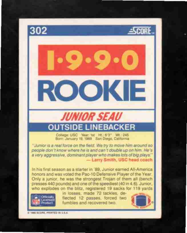 1990 score # 302 - JUNIOR SEAU RC - USC Trojans