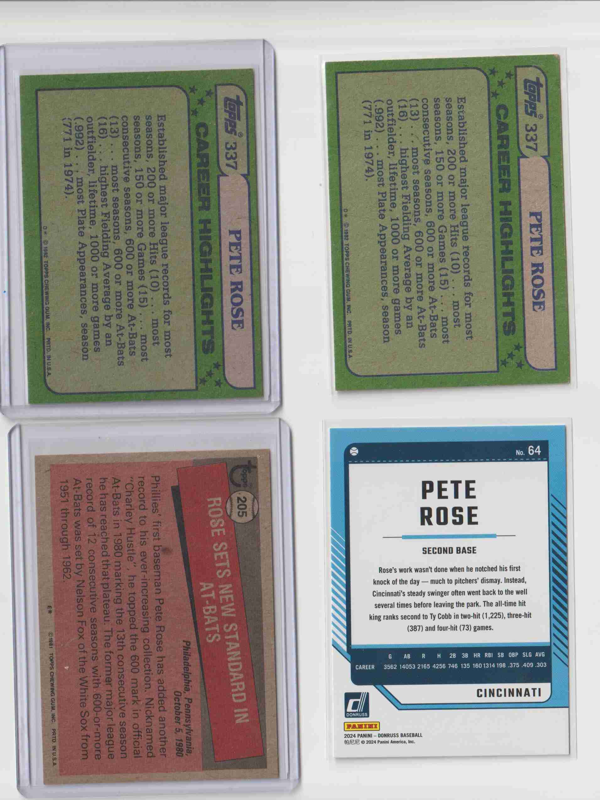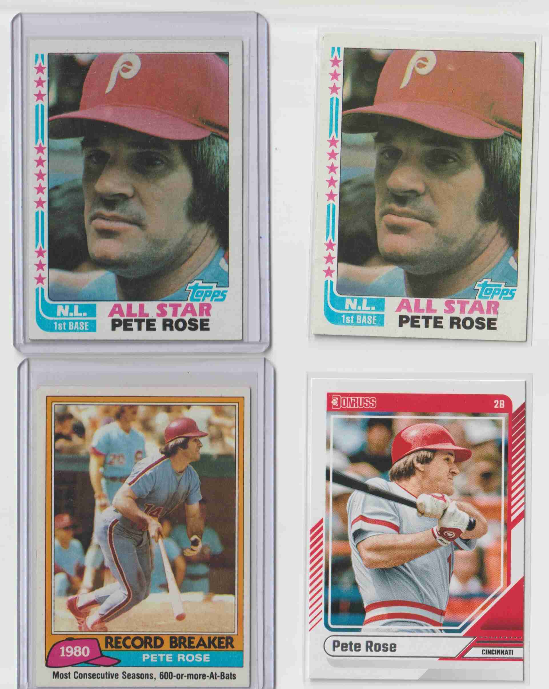 Pete Rose 4 card lot Phillies, Reds