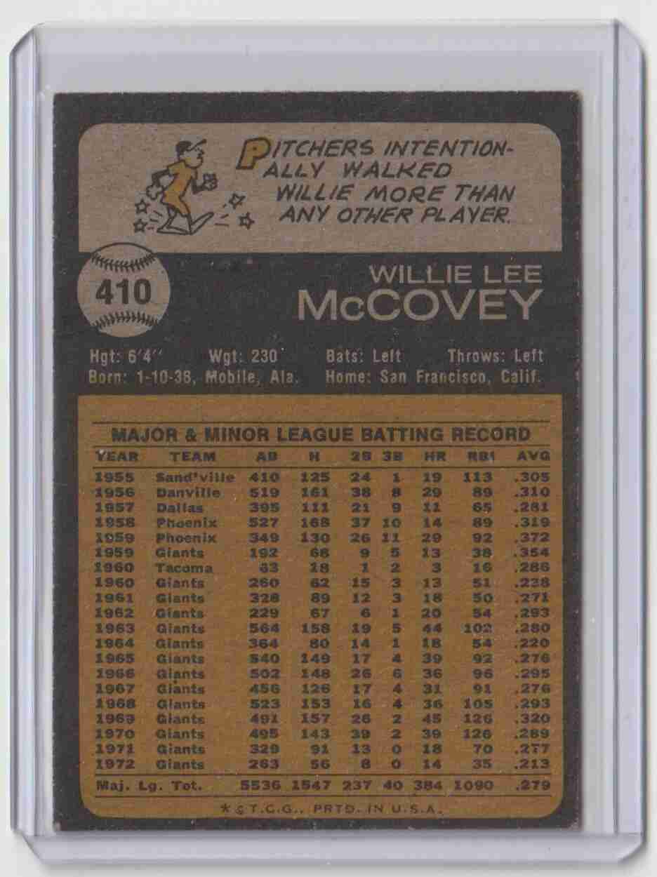 1973 Topps # 410 Willie McCovey SF Giants w/ Johnny Bench on card