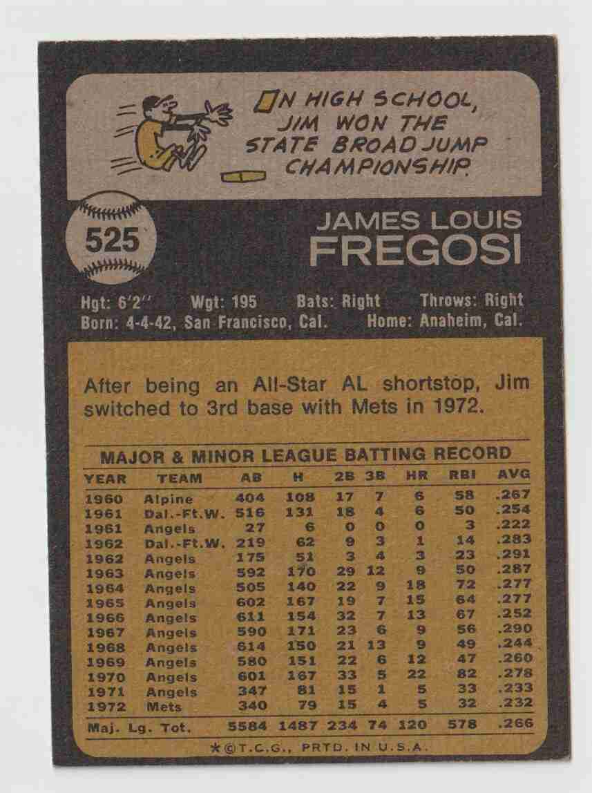 1973 Topps # 525 Jim Fregosi NY Mets w/ Johnny Bench on card
