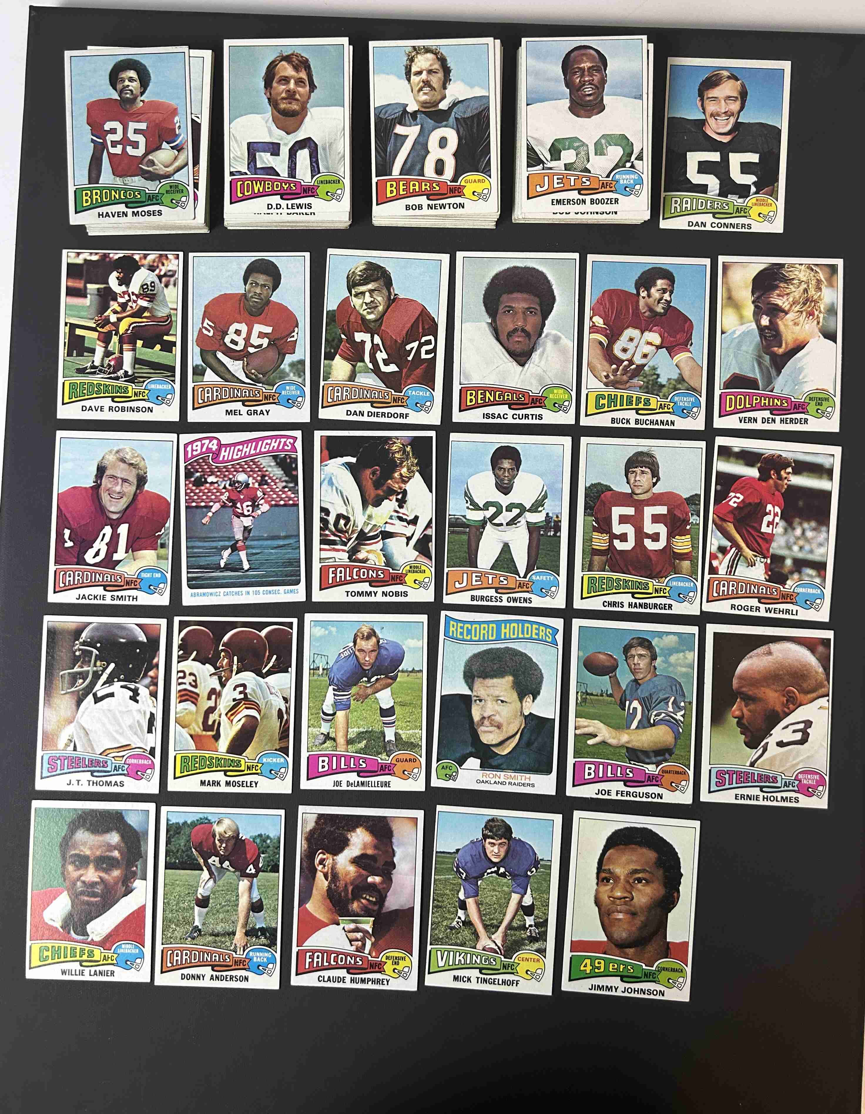 149 different 1975 Topps football. Condition ranges from EX to EX-MT. #'s 9,11,13,14,15,16,17,18,19,22,23,24,25,26,27,29,32,34,35,36,37,38,40,41,42,43,45,46,47,51,52,53,54,56,58,61,62,63,67,68,69,71,72,73,74,76,77,78,79,82,83,