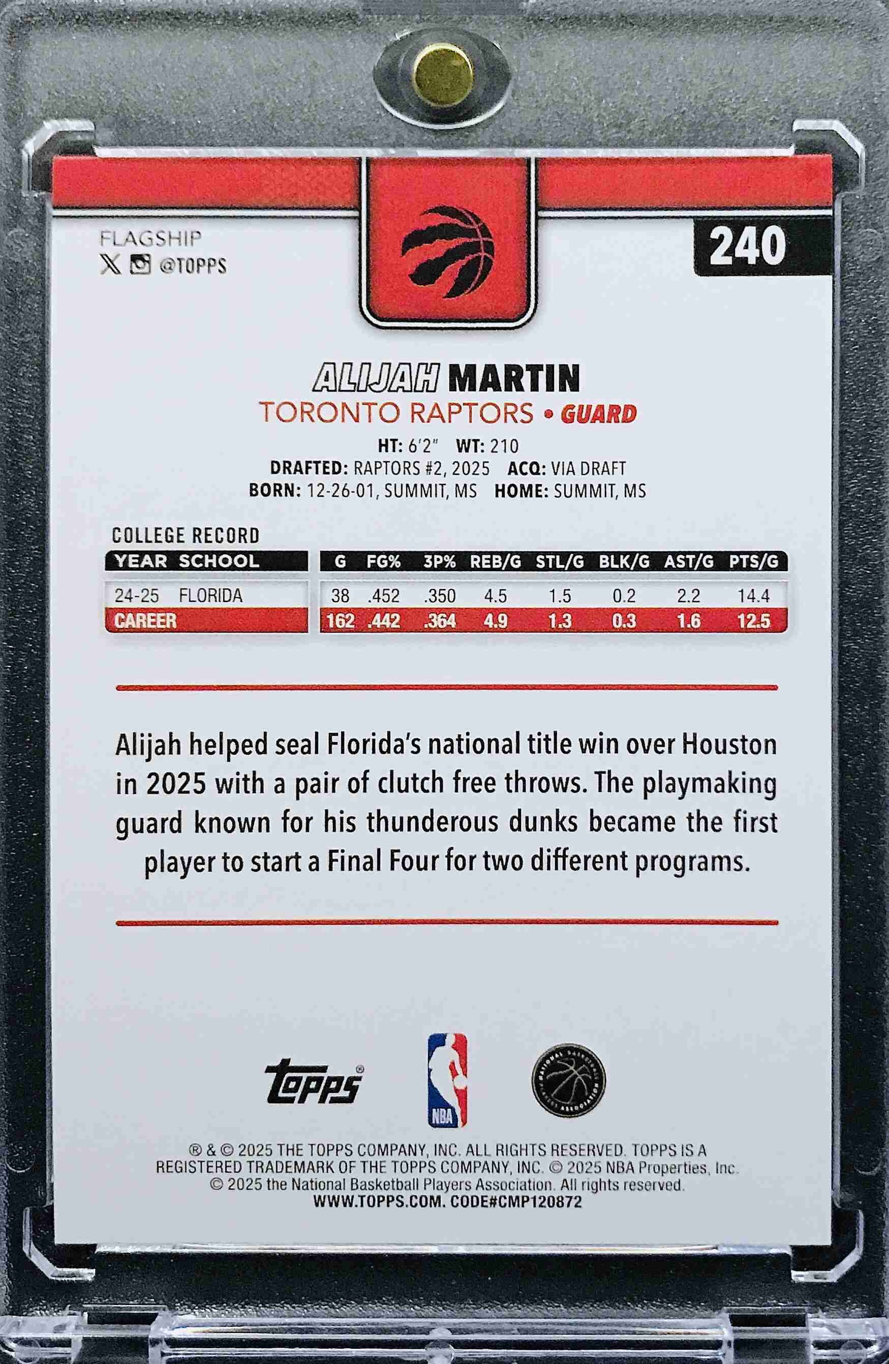 ALIJAH MARTIN RC - 2025-26 Topps #240 - TORONTO RAPTORS