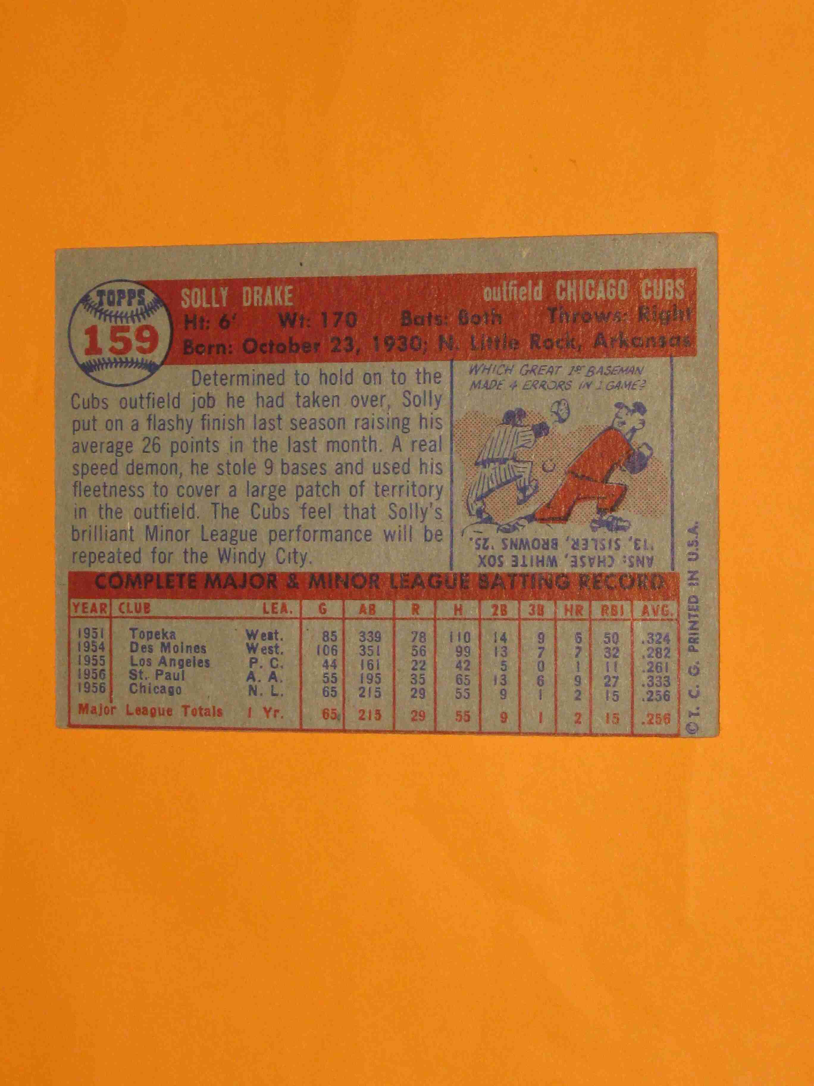 1957 Topps Solly Drake #159 Chicago Cubs NICE