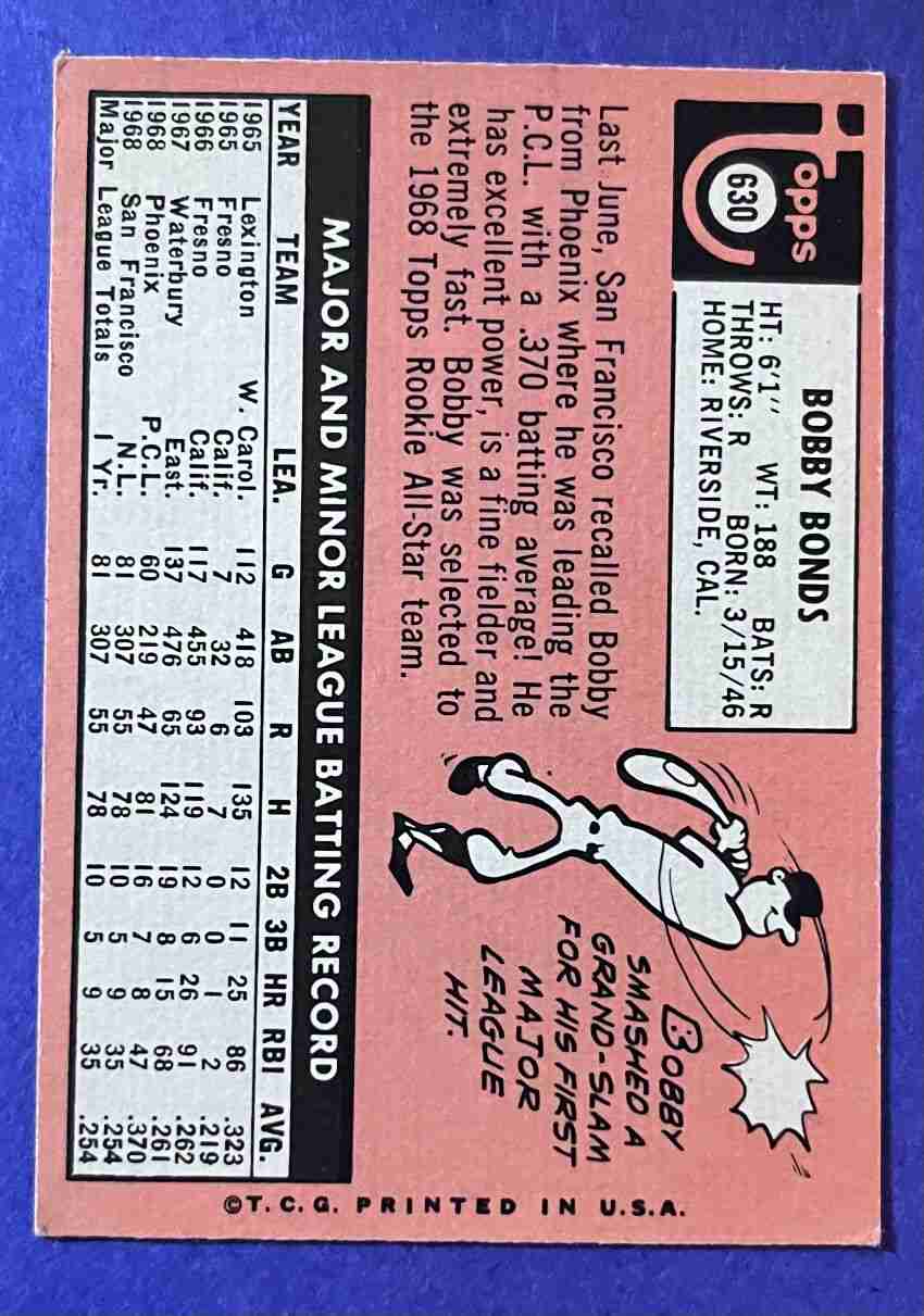 69 Topps BOBBY BONDS RC Hi #630 ++