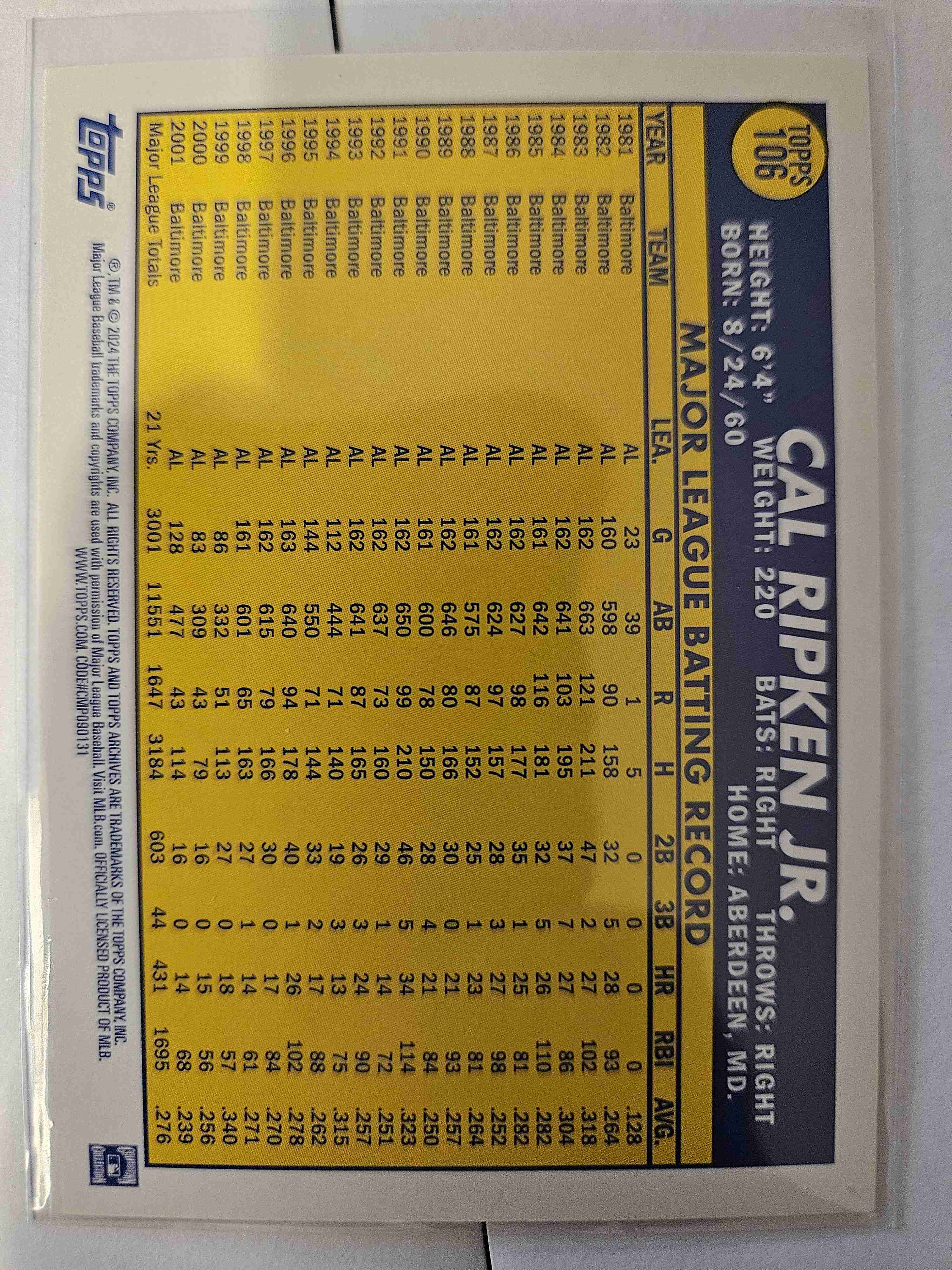 Cal Ripken Jr 2024 Topps Archives Black Border SP