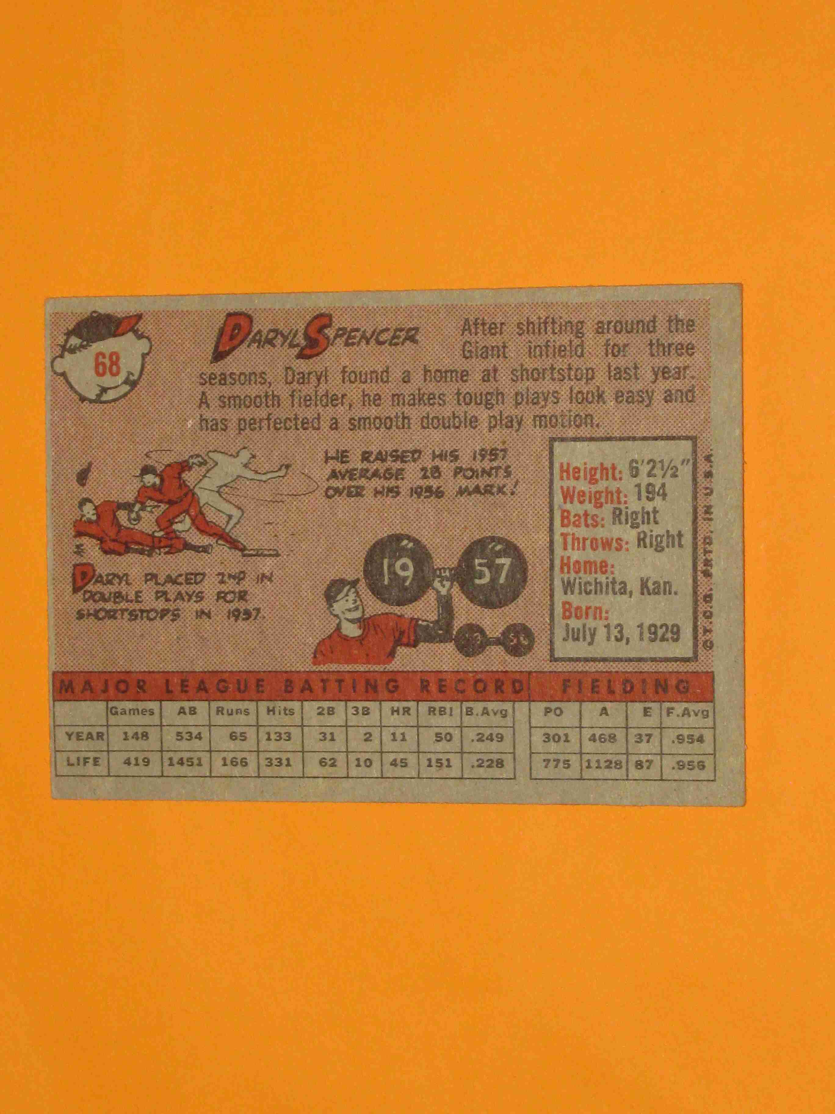 1958 Topps Daryl Spencer #68 San Francisco Giants NICE