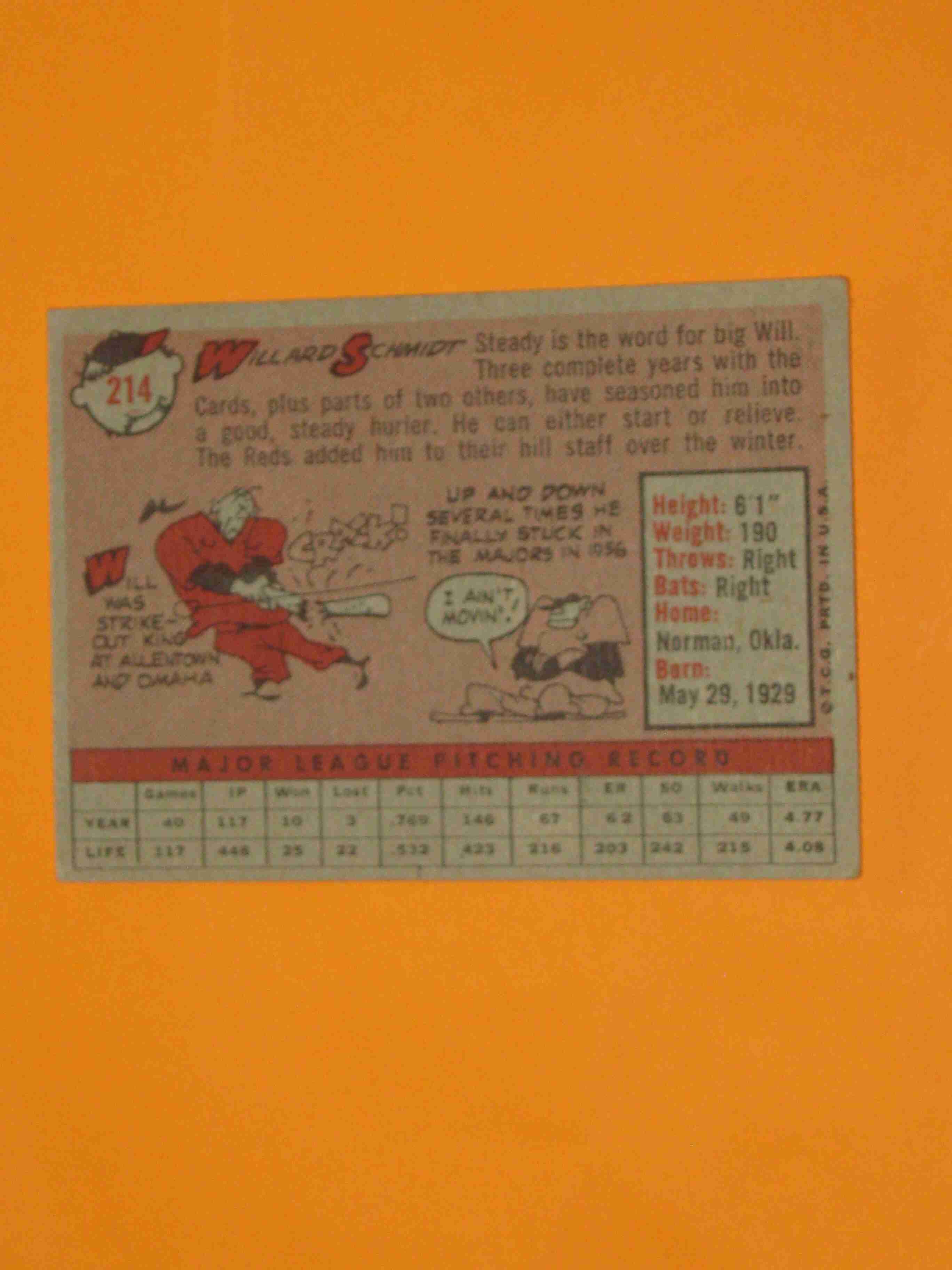 1958 Topps Willard Schmidt #214 Cincinnati Reds