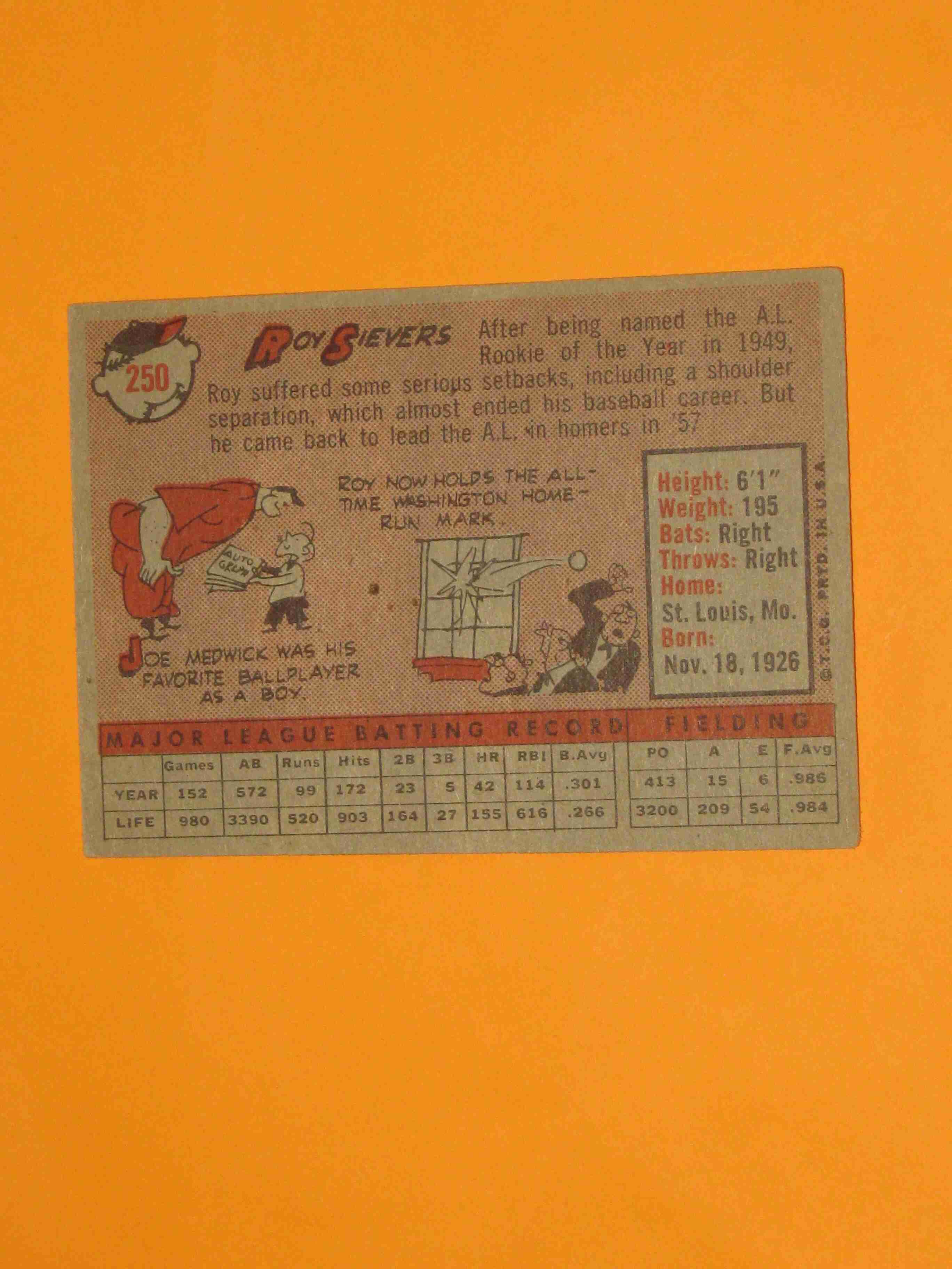 1958 Topps Roy Sievers #250 Washington Senators NICE