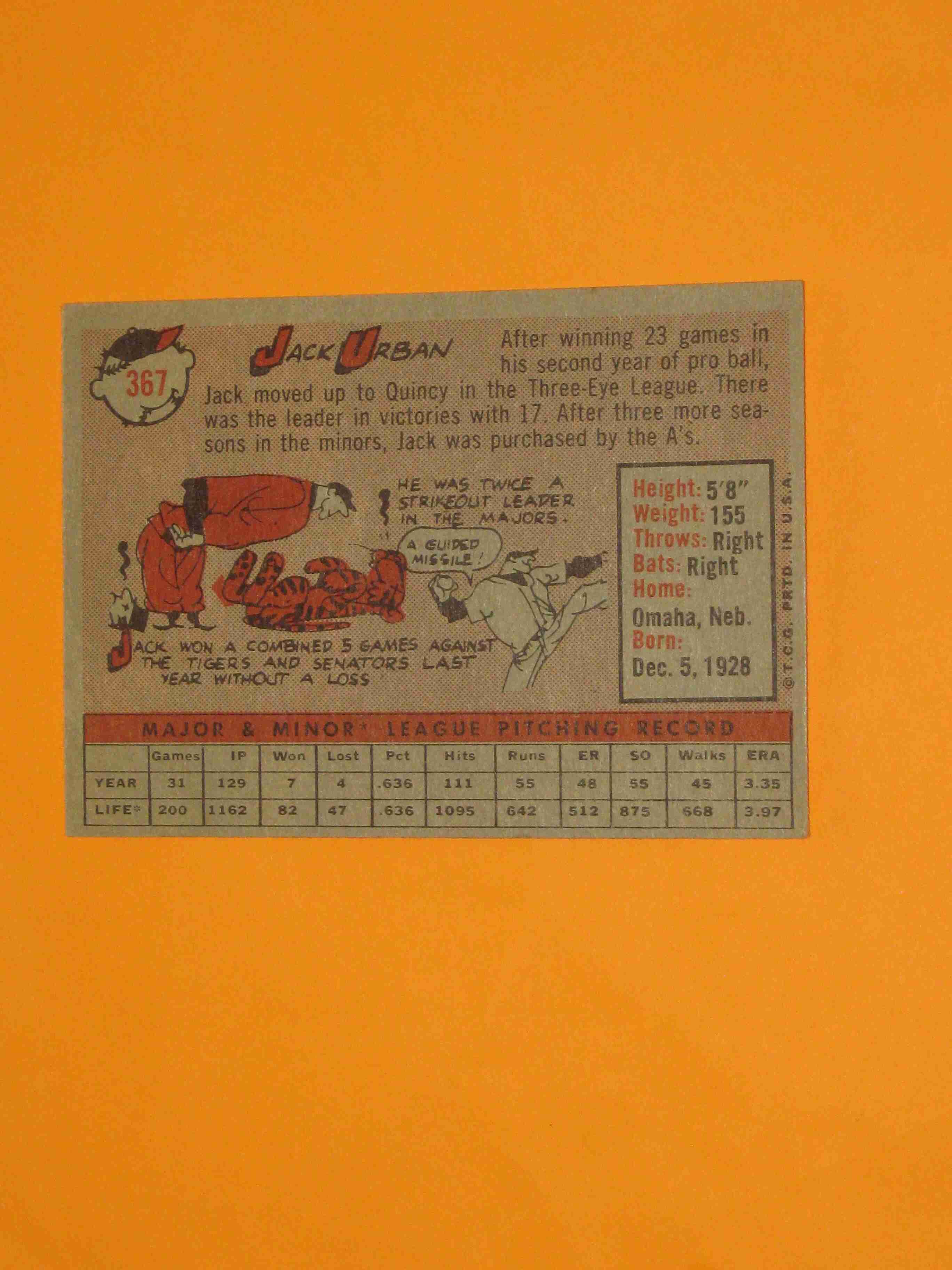 1958 Topps Jack Urban #367 Kansas City Athletics