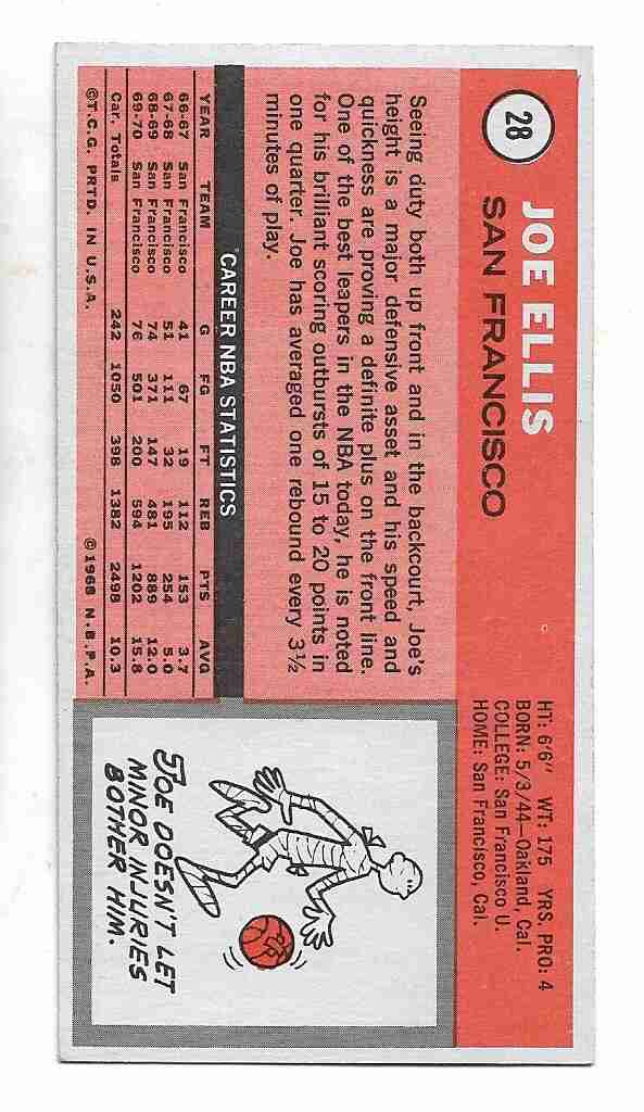 1970-71 Topps #28 ~ Joe Ellis San Francisco Warriors