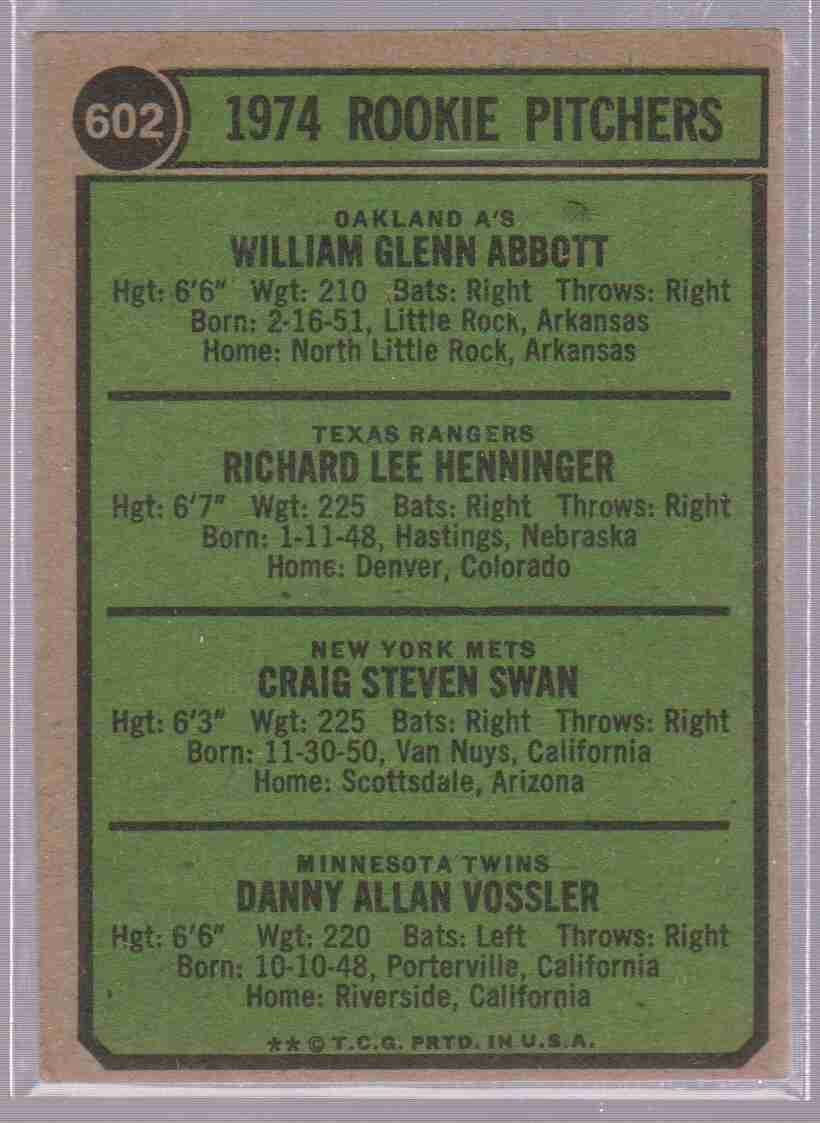 1974 Rookie Pitchers Abbott/Henninger/Swan/Vossler