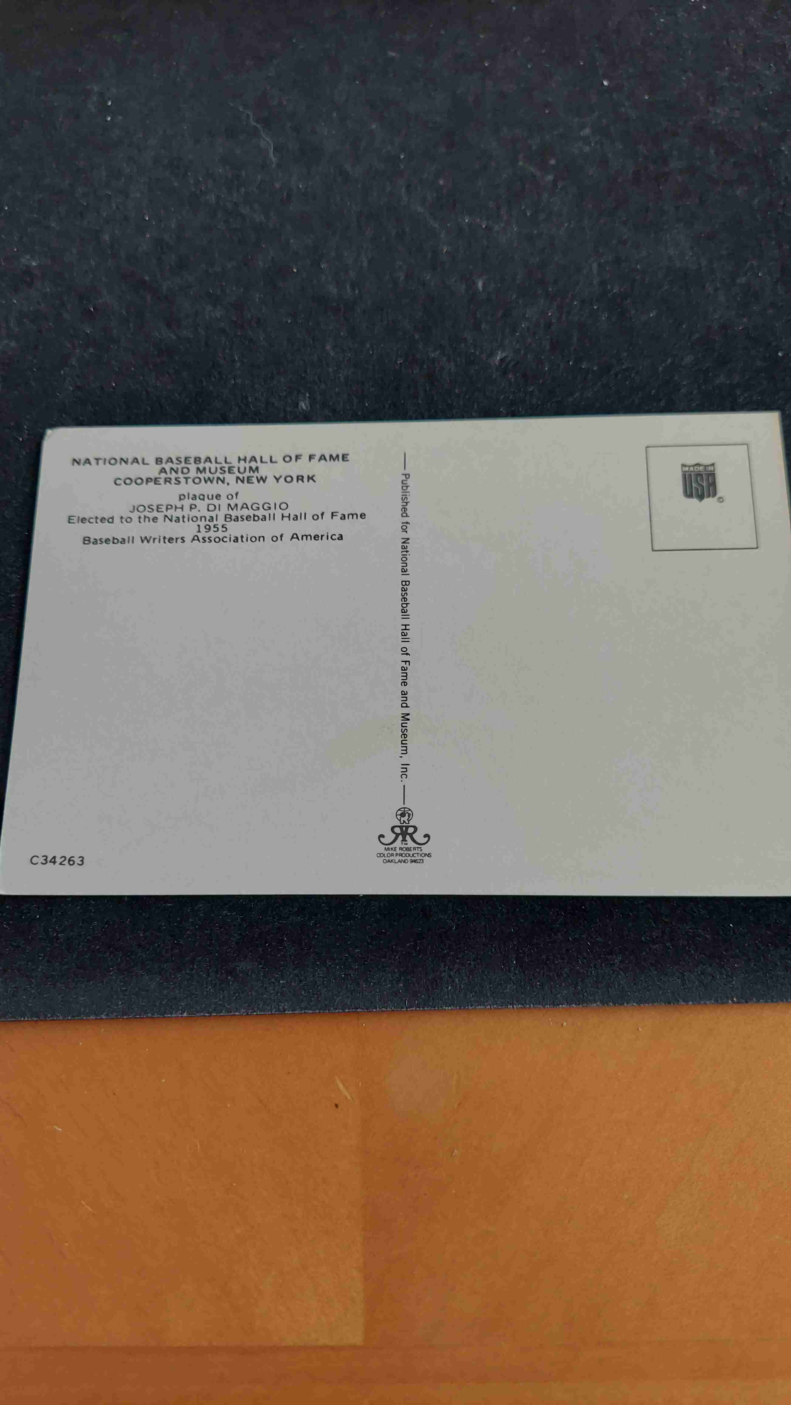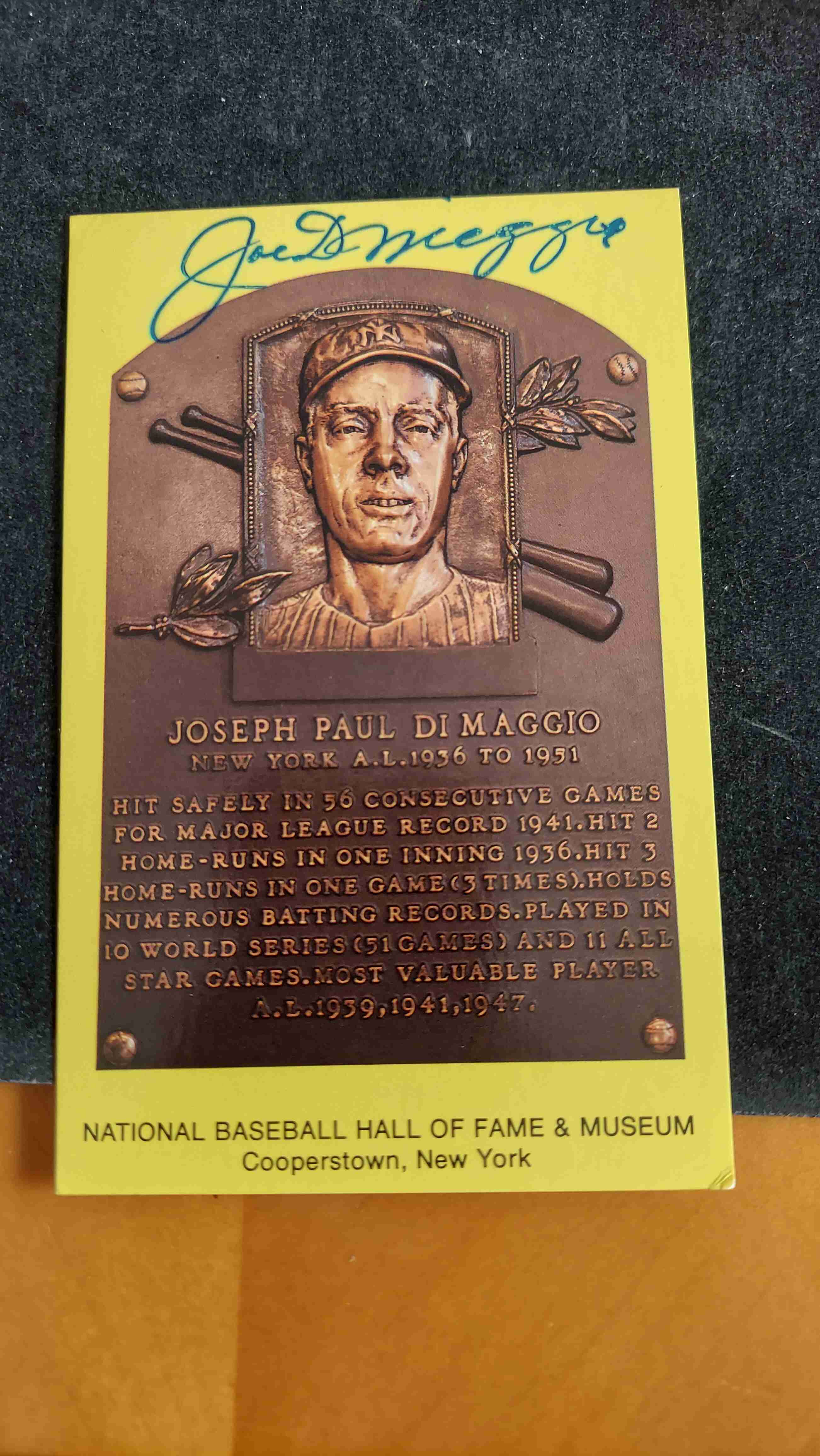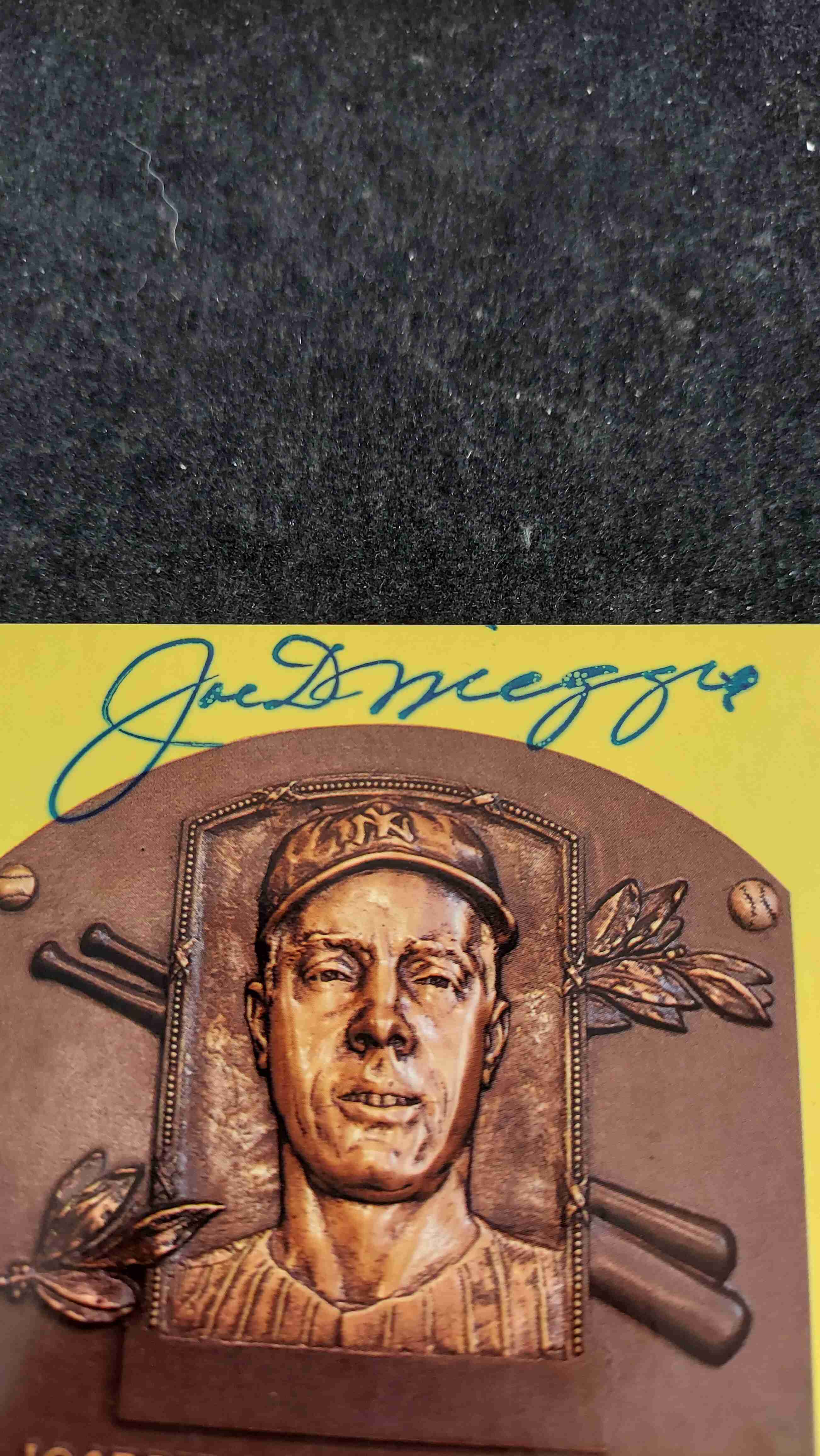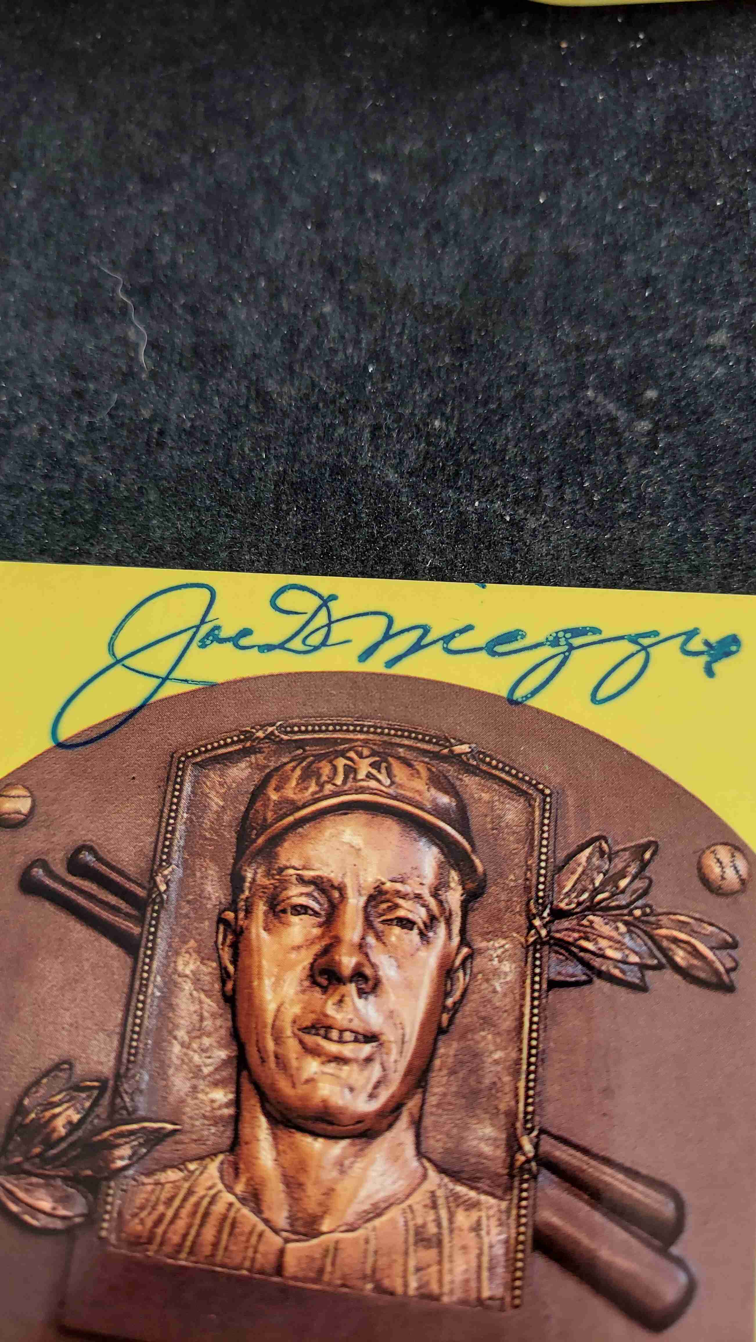 Joe Dimaggio signed in blue Sharpie gold hof postcard