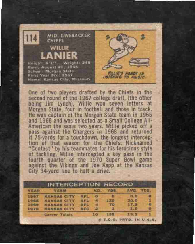 1971 Topps # 114 WILLIE LANIER KC Chiefs