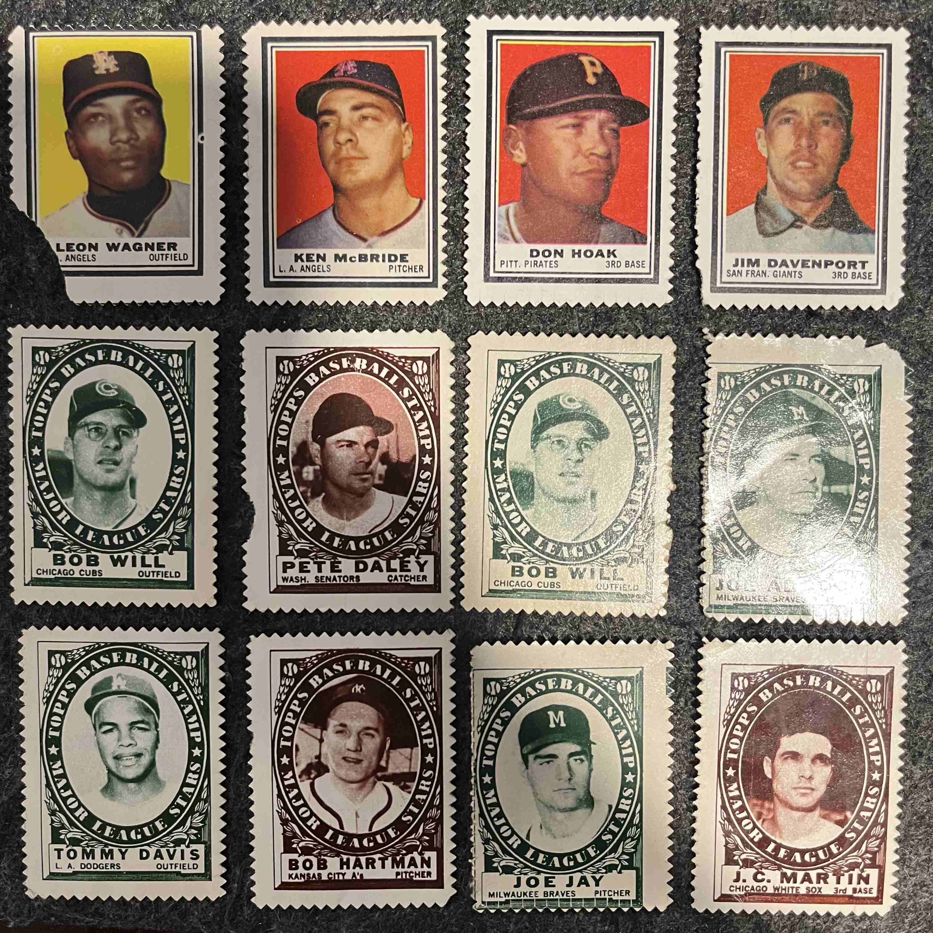 Lot of 12 Topps Baseball Stamps (1961-1962)
