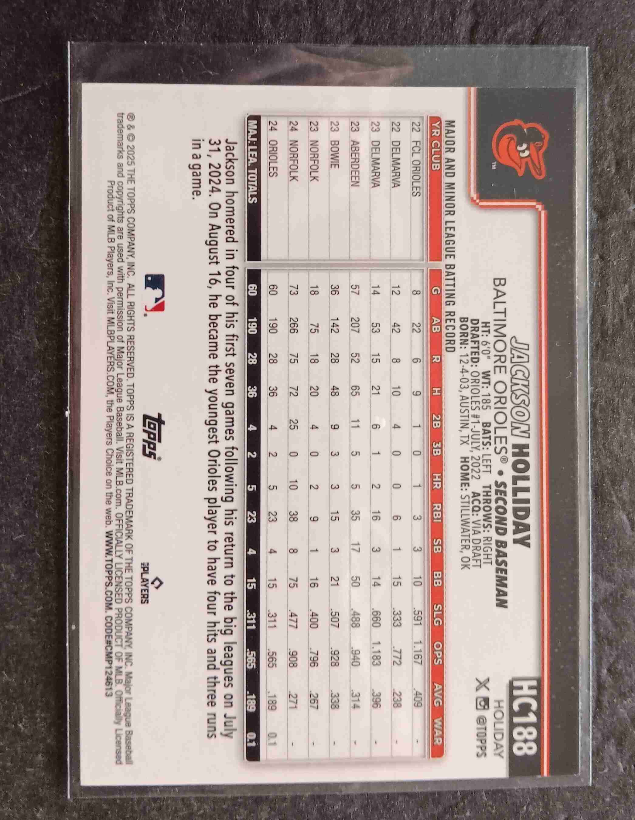 2025 Topps Holiday Jackson Holliday Chrome Refractor #/499