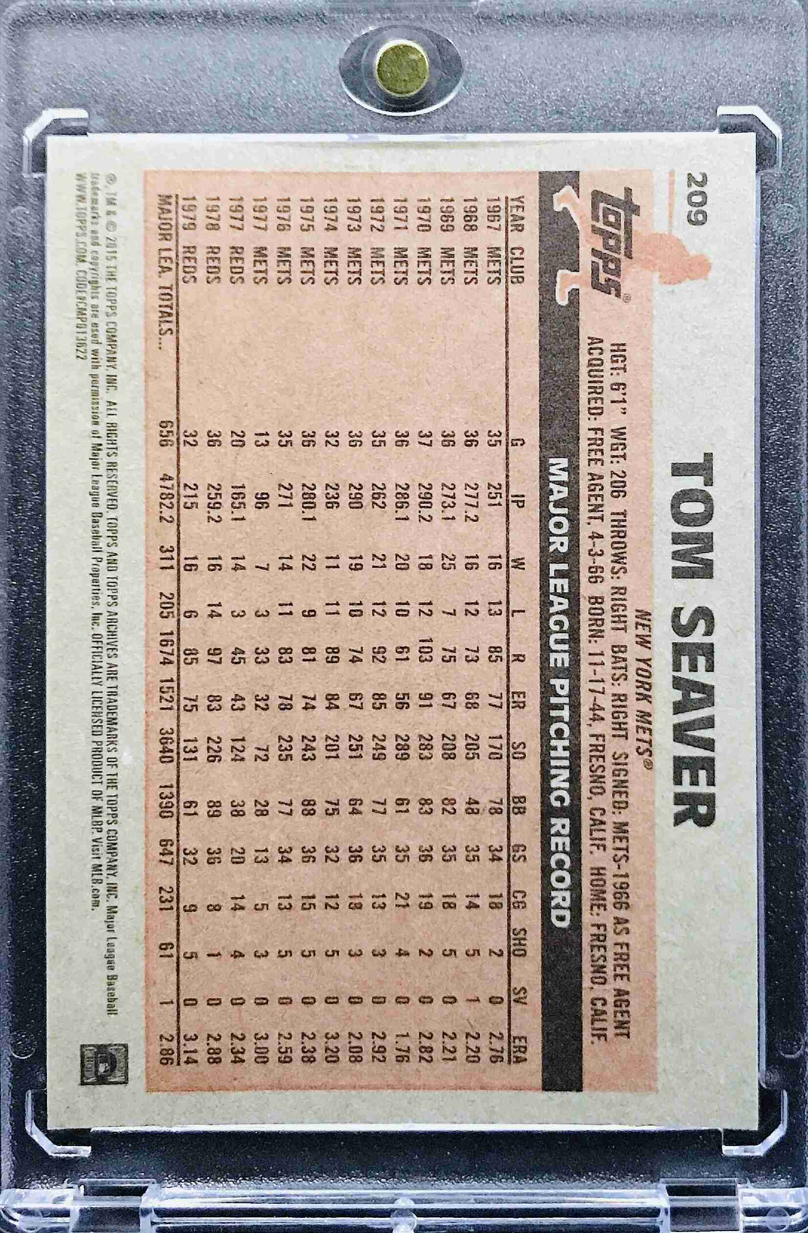 TOM SEAVER - 2015 Topps Archives #209 - NEW YORK METS