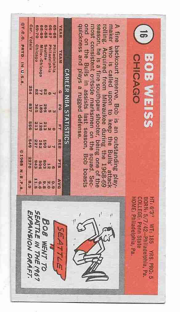 1970-71 Topps #16 ~ Bob Weiss Chicago Bulls