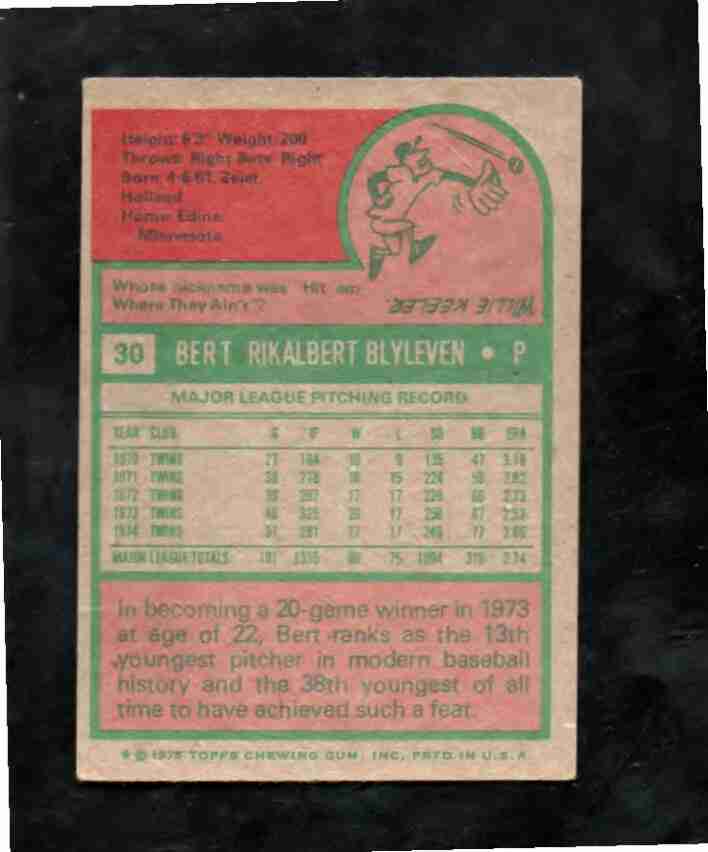 1975 Topps # 30 HOFer BERT BLYLEVEN Twins