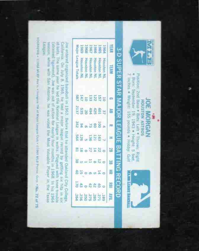 1970 Kellogg 3-D Super Stars #72 JOE MORGAN Astros